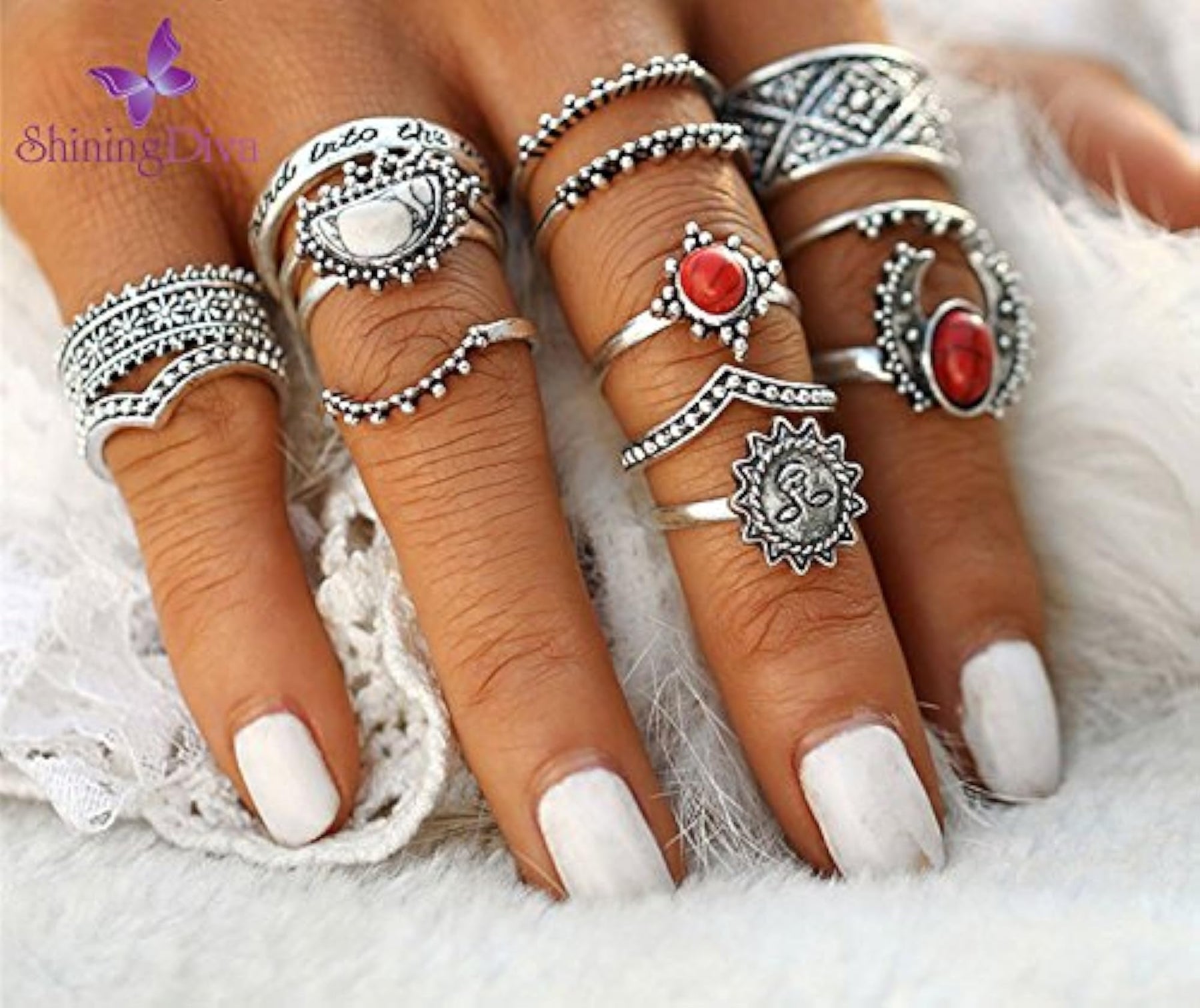 This set includes 14 midi finger rings suitable for women and girls. Add a touch of style to your outfits with these trendy rings.