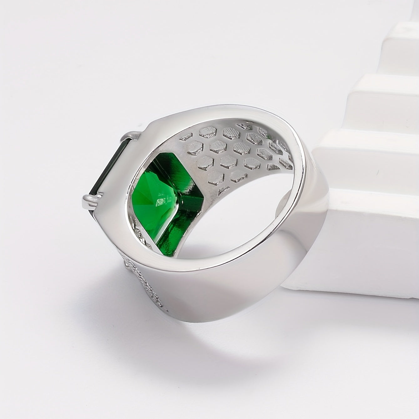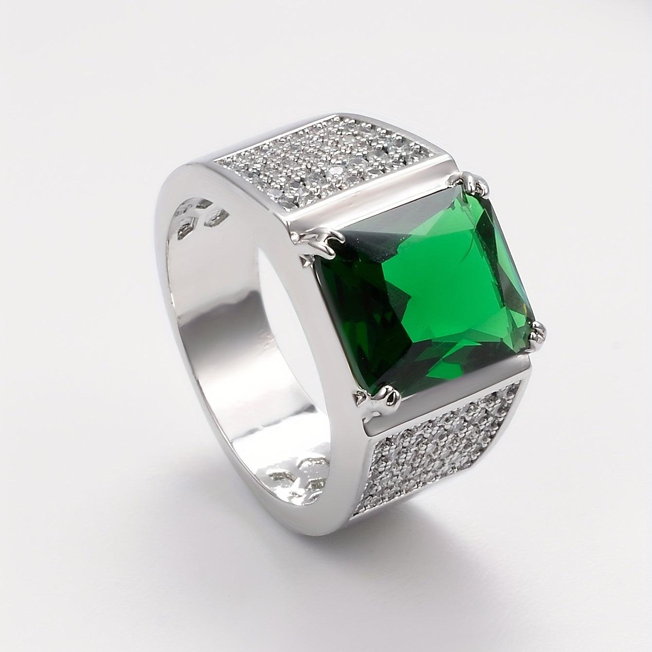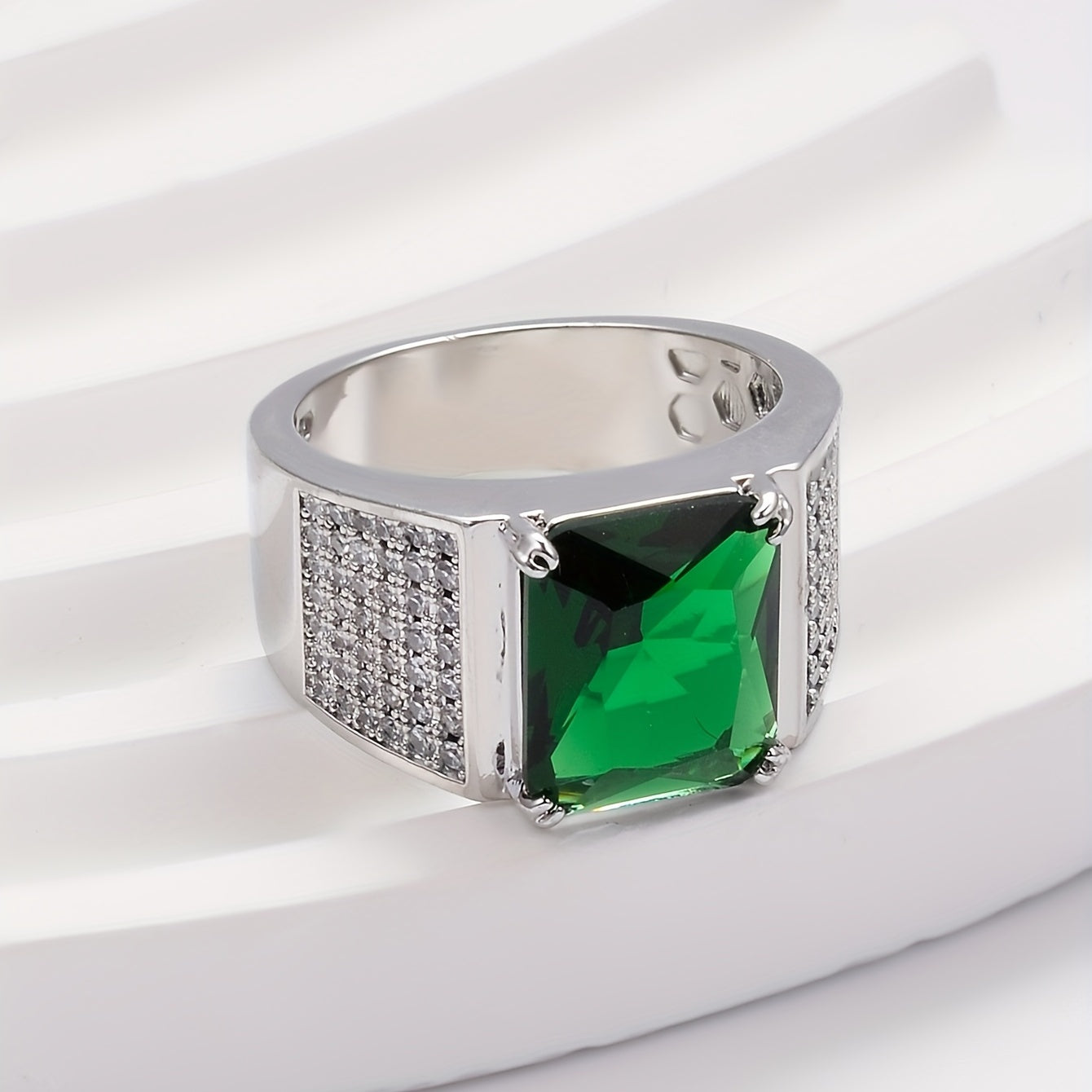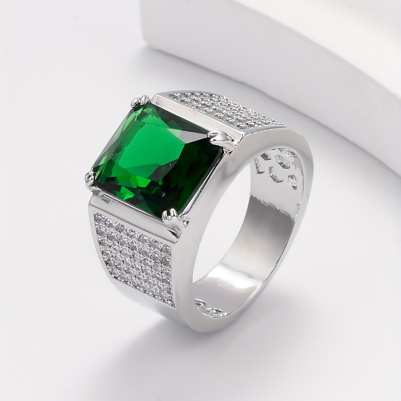 Elegant ring featuring a green zircon center stone surrounded by micro zircon accents. Perfect for adding a touch of glamour to any outfit.