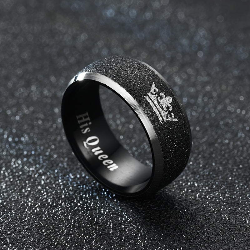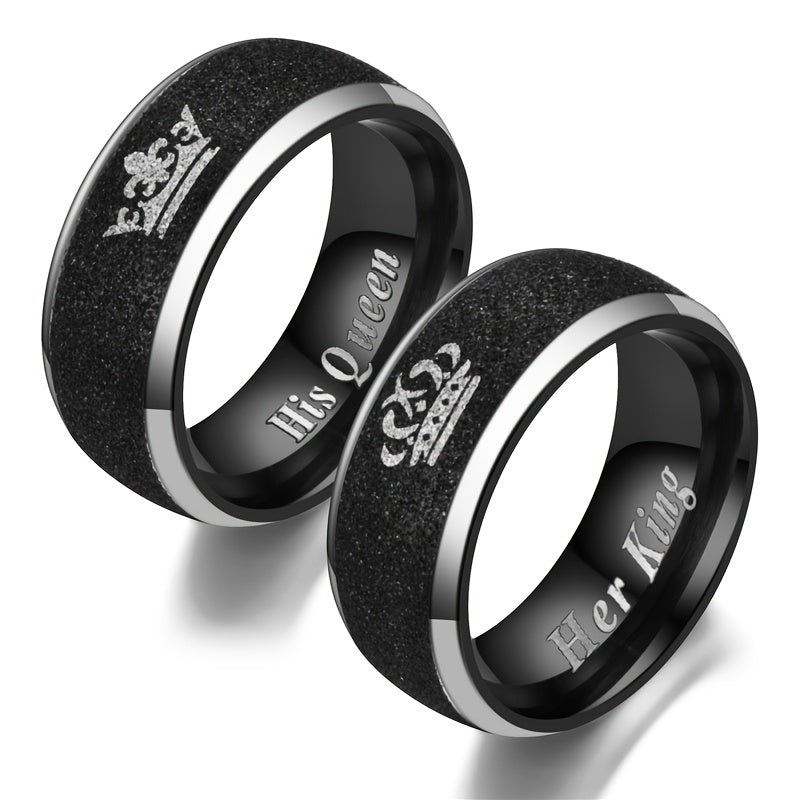 These engraved matching rings for couples are perfect for weddings. The set includes two rings, one for him and one for her, with a crown design. Made of durable stainless steel, these rings symbolize the love and commitment between partners.