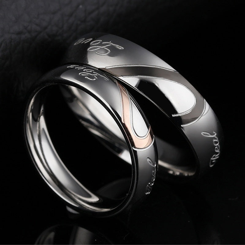 This stainless steel couple ring set is perfect for weddings and romantic occasions. Celebrate your love with these beautiful rings!
