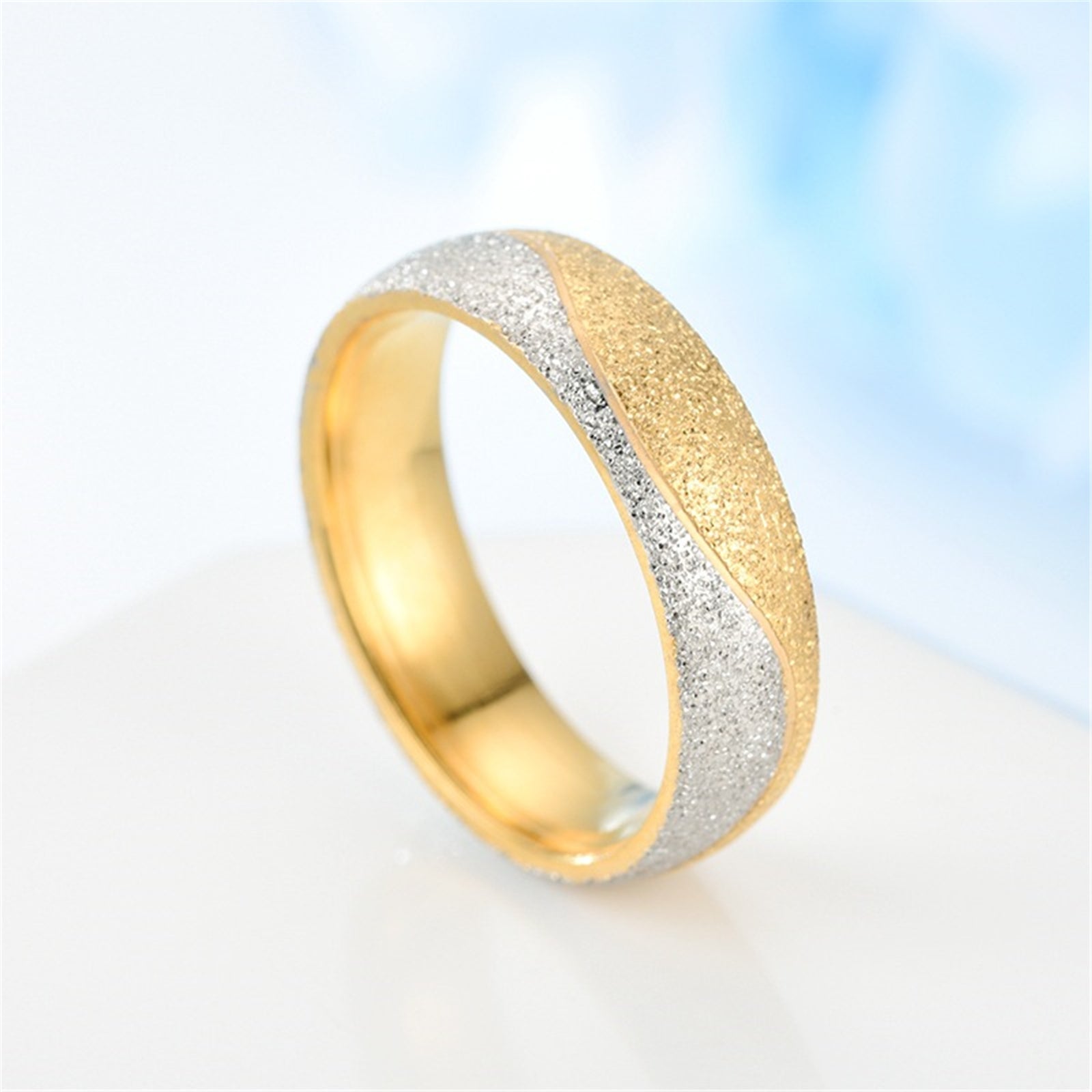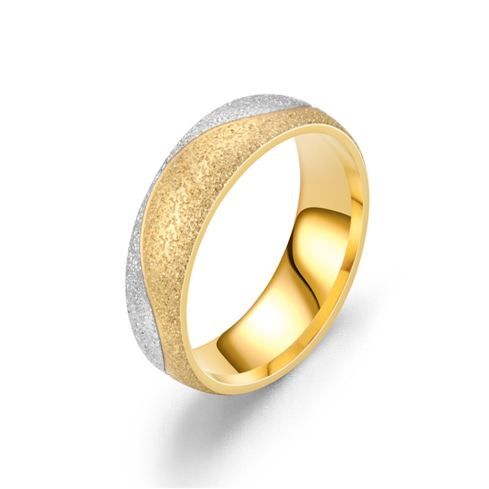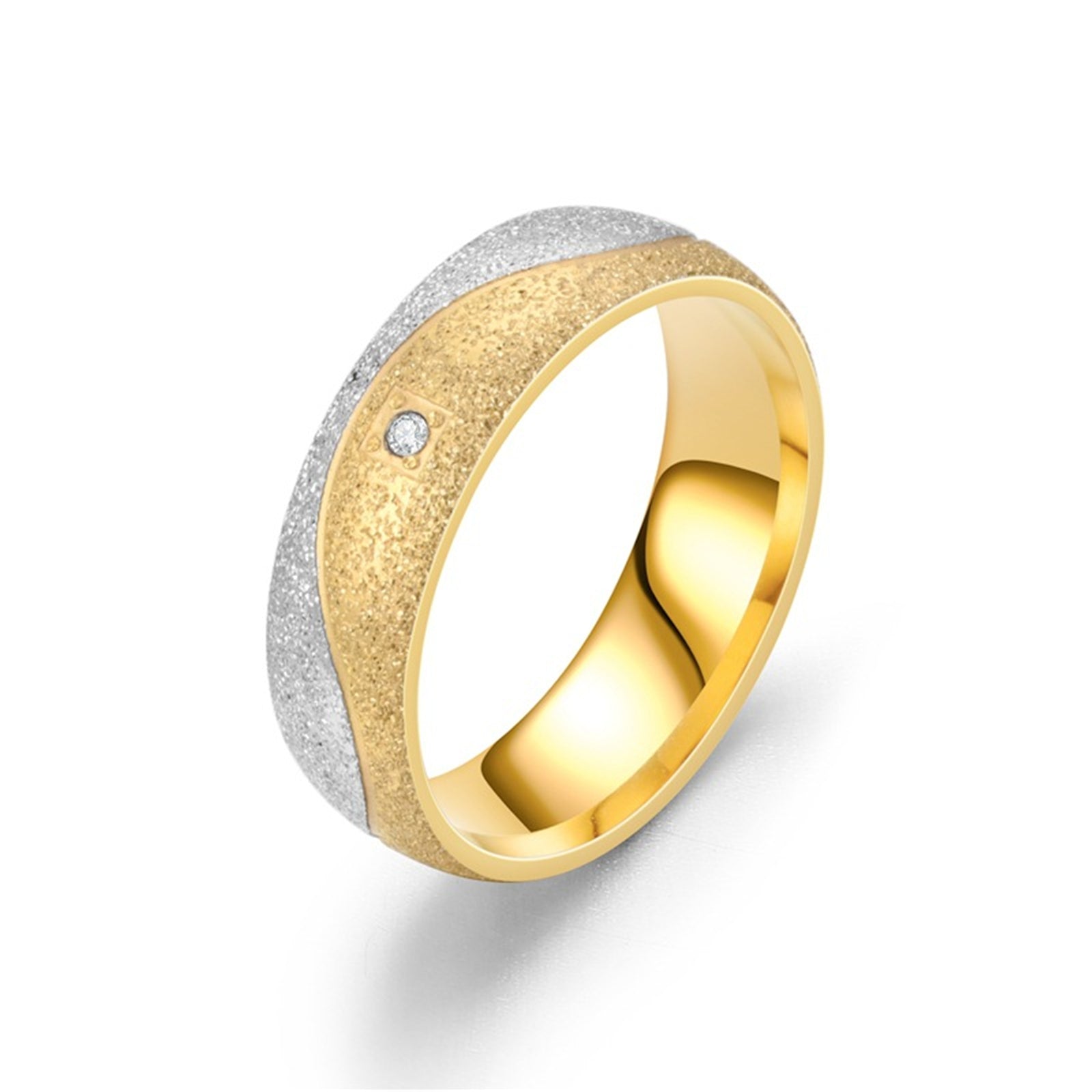 Beautiful set of couple rings made of high-quality stainless steel featuring frosted finish and zircon accents.