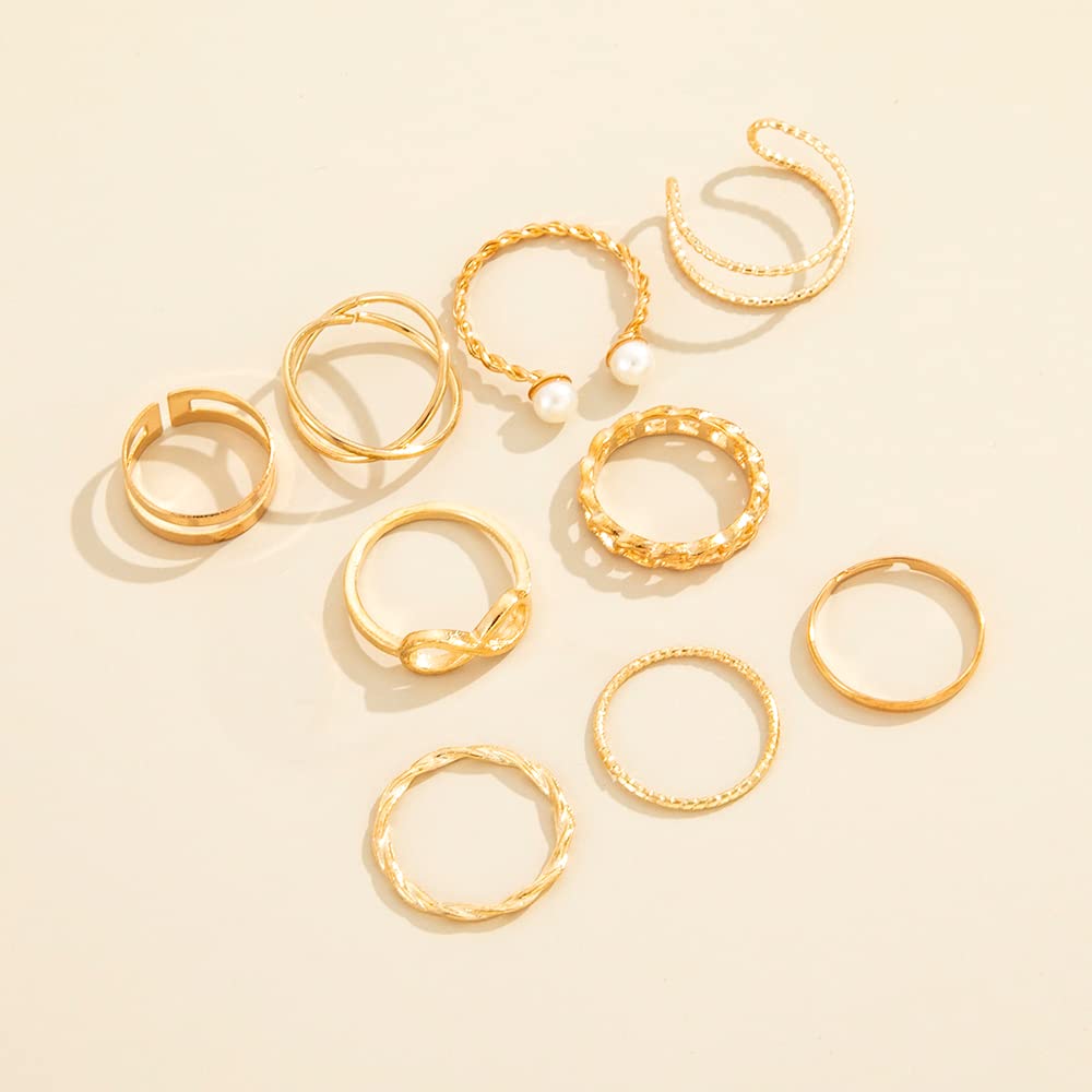 Stylish Metal Boho Midi Finger Rings Set - Pack of 9