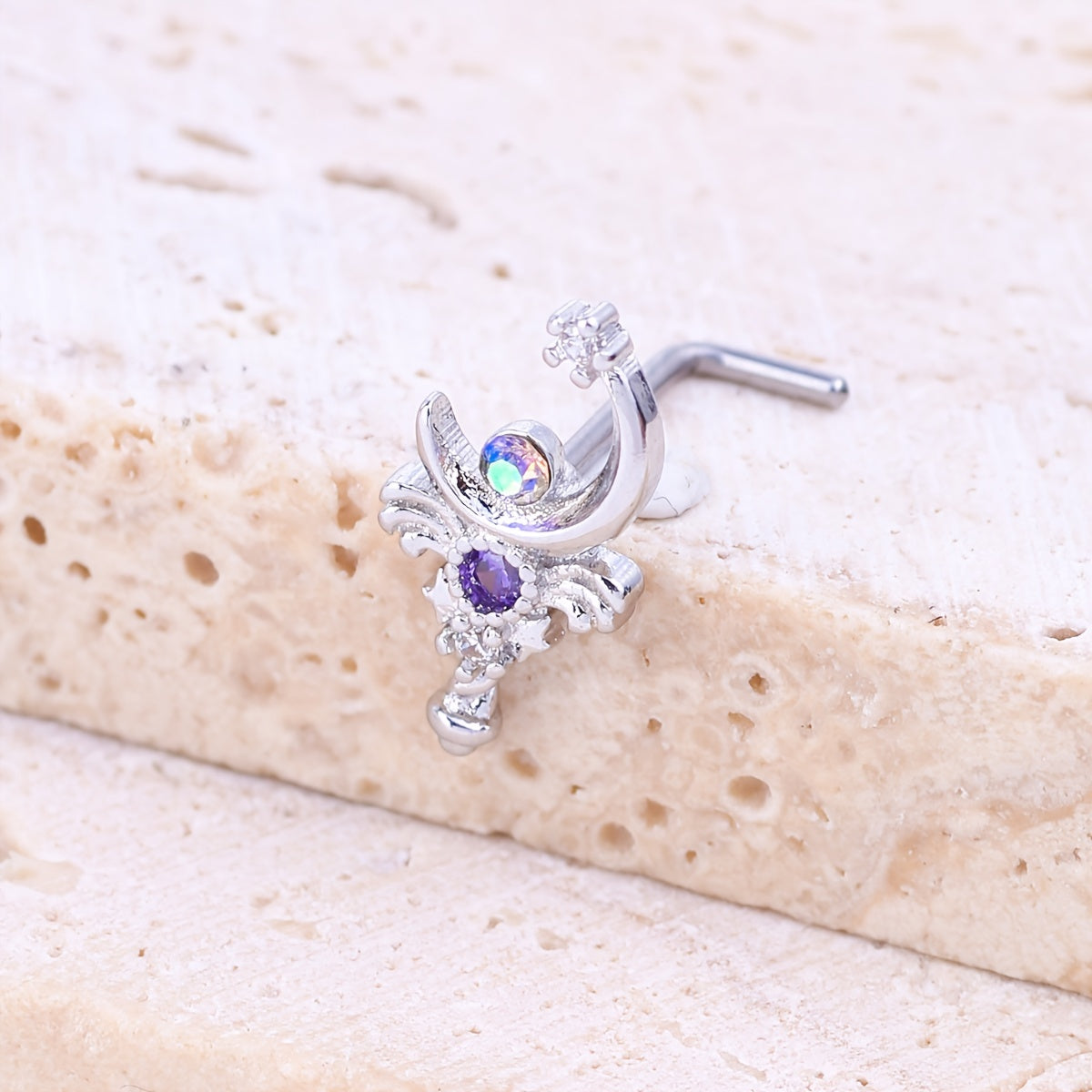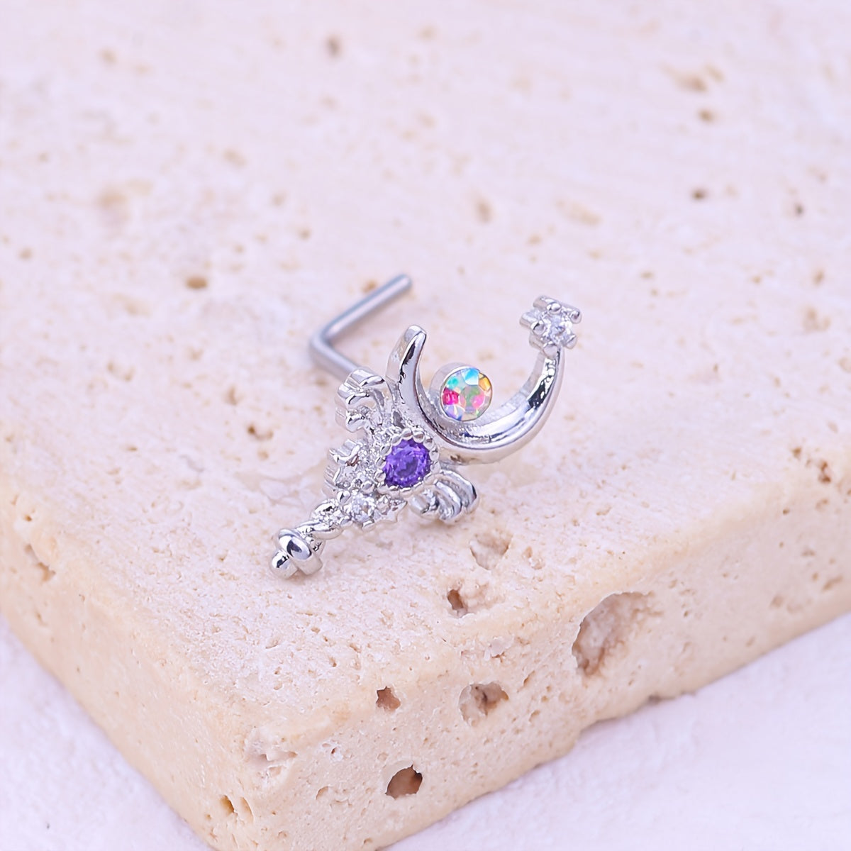 Get a unique and stylish look with this moon nose ring featuring inlaid zircon. Perfect for women and girls who want to stand out.