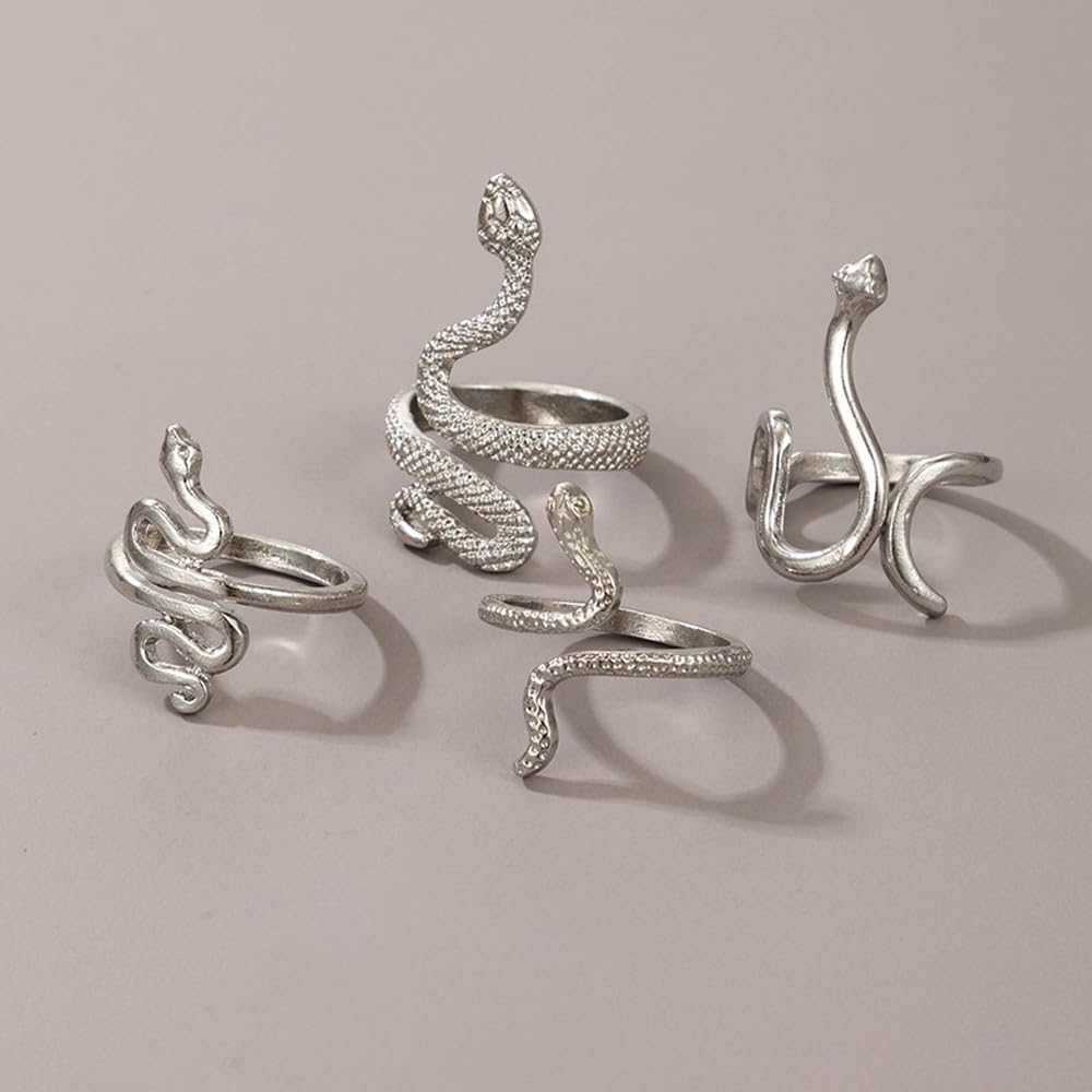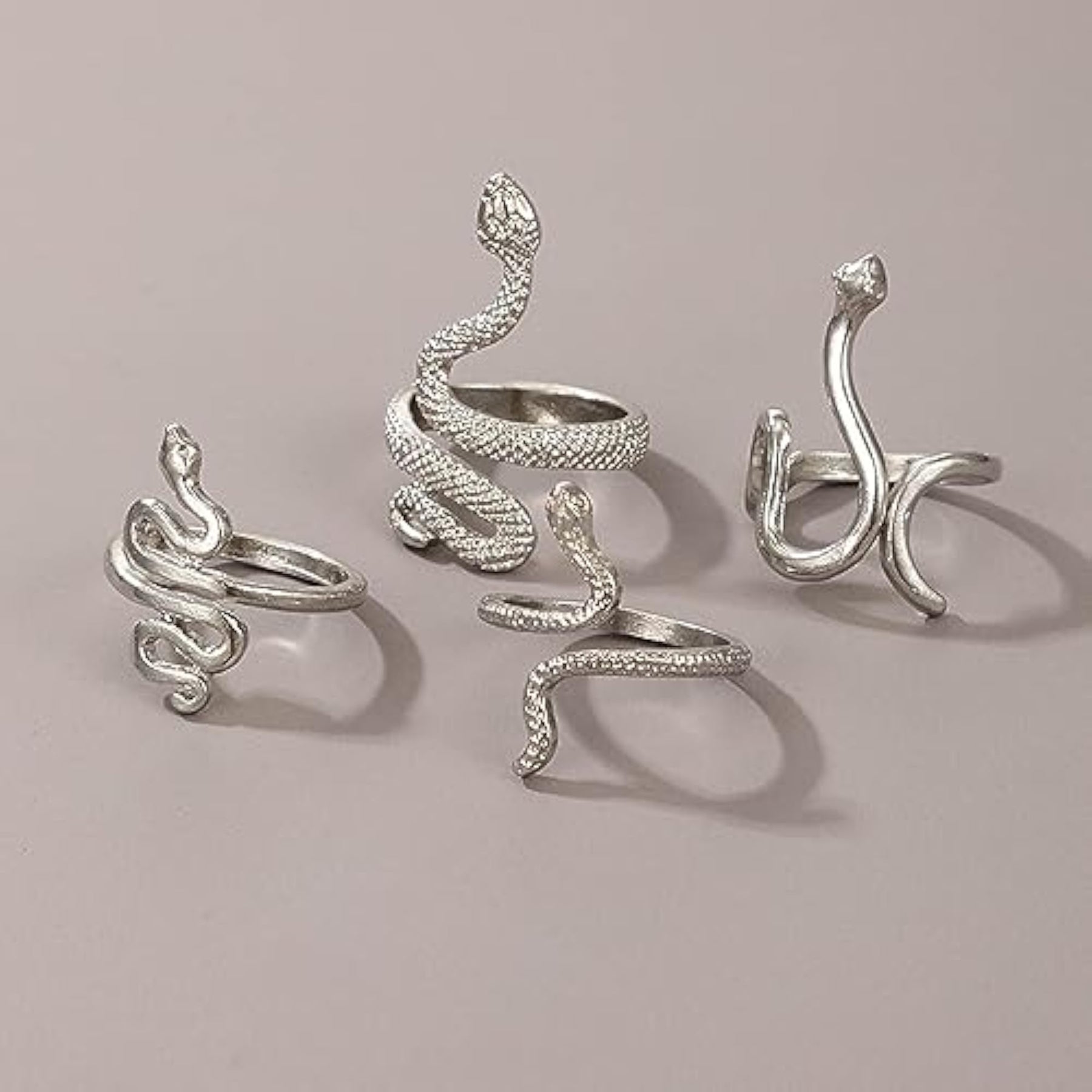 Elevate your style with this set of 4 stylish silver rings. Perfect for casual or formal wear.