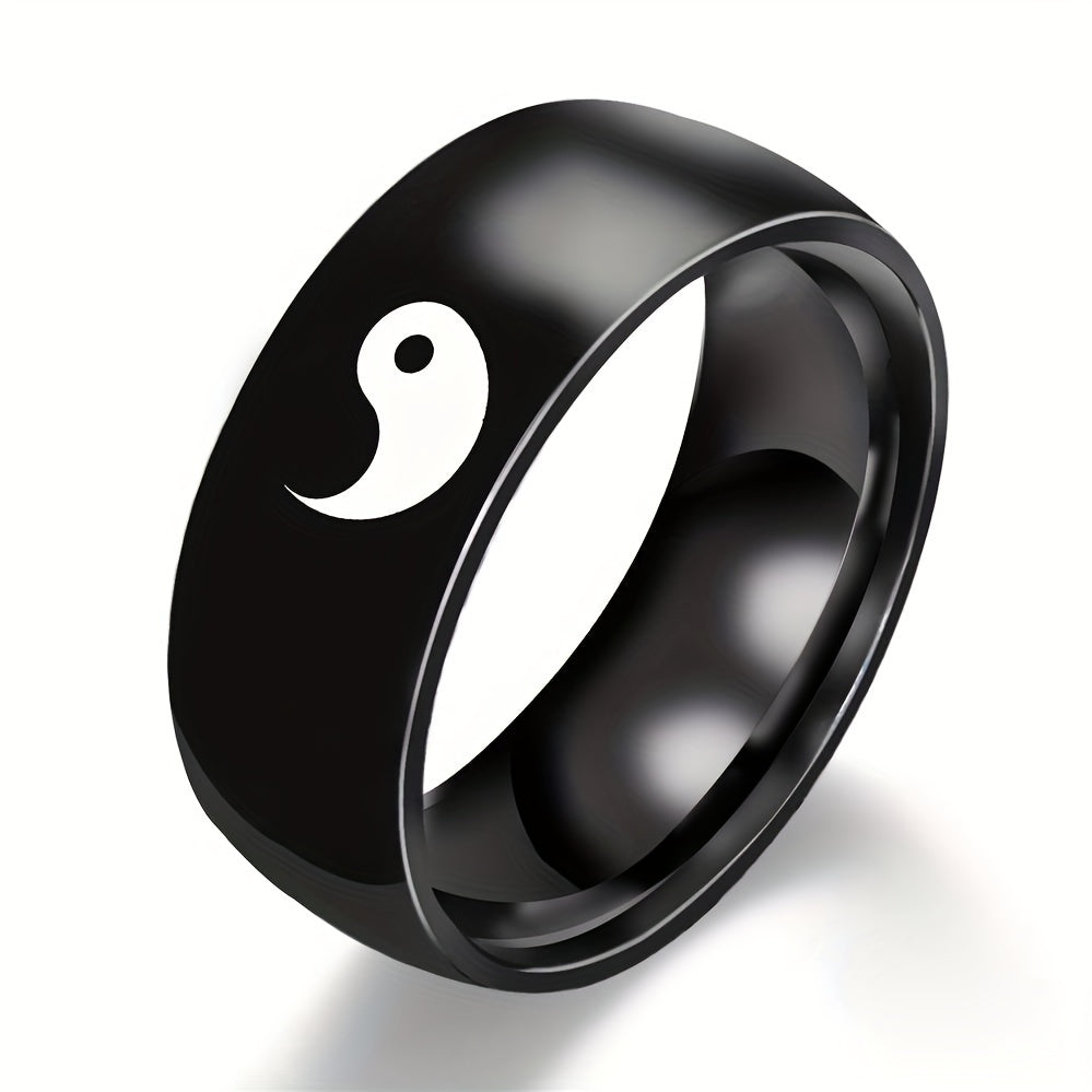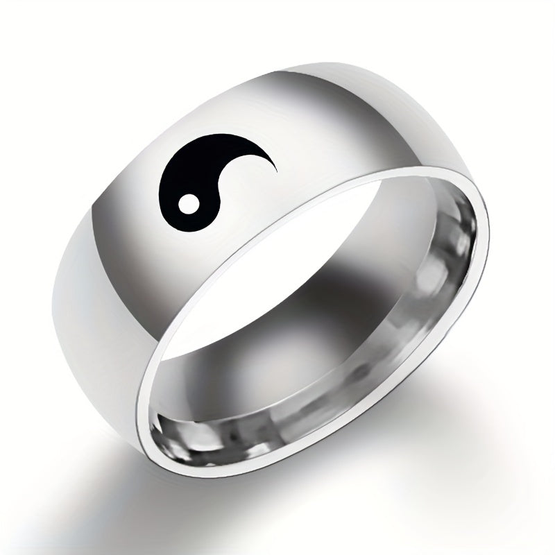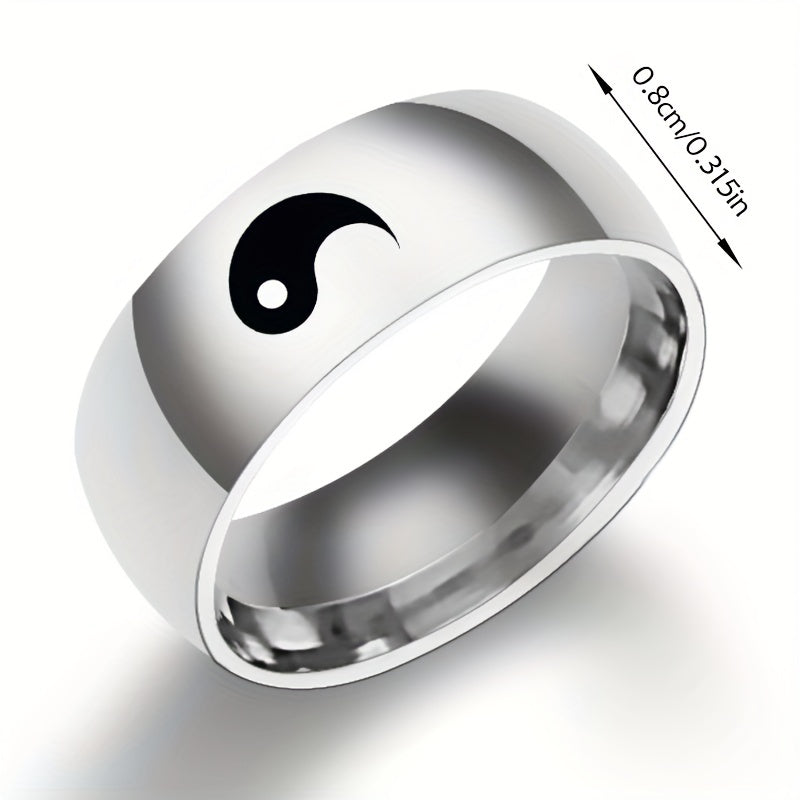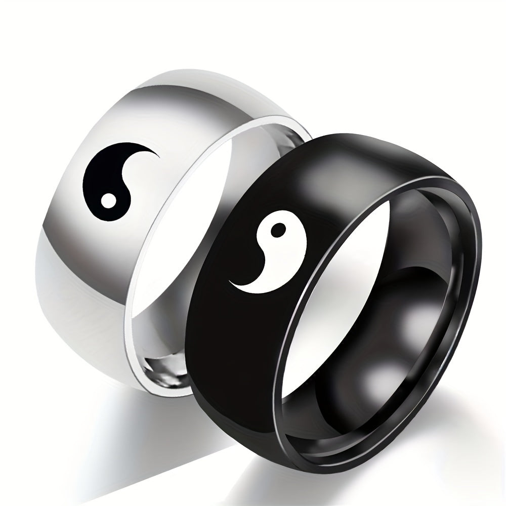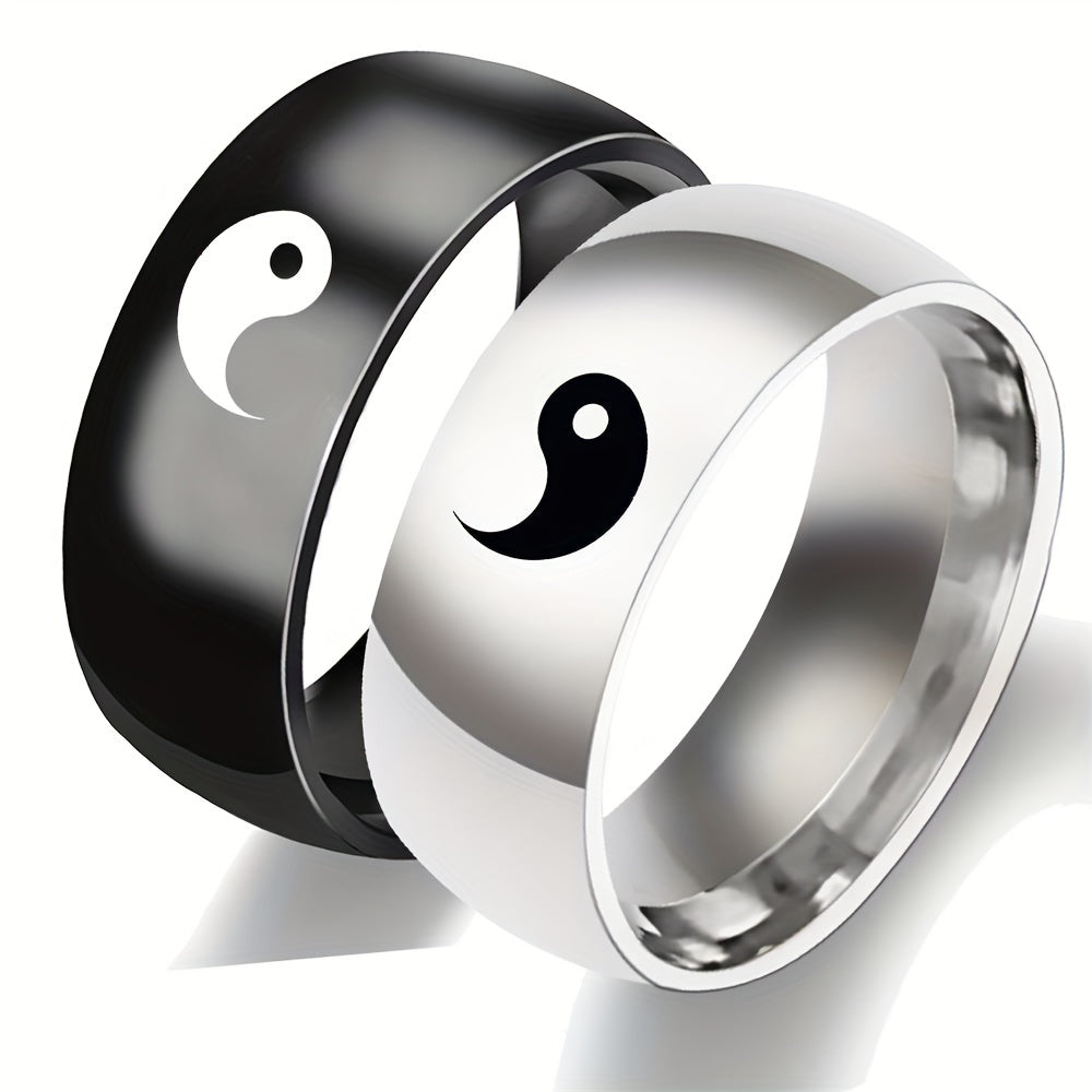 Striking stainless steel rings featuring the Tai Chi symbol, perfect for couples. Symbolizes balance and harmony.