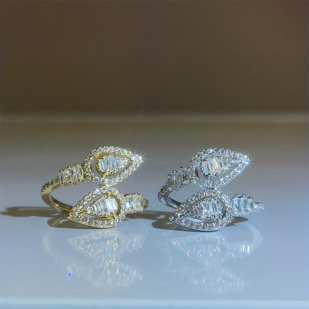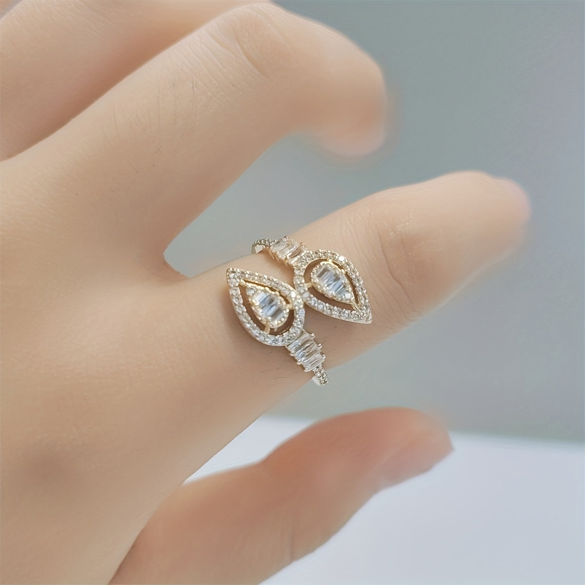 • Teardrop inlaid wrap ring with shining zircon