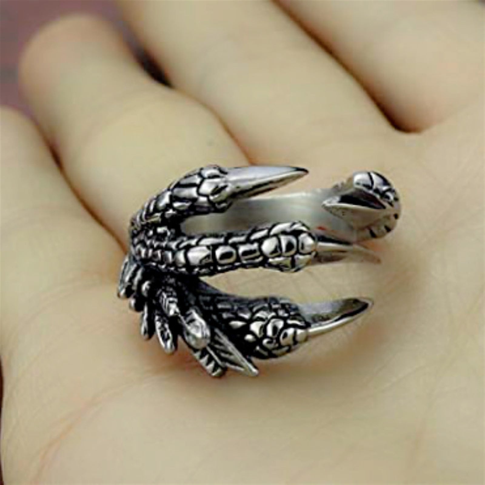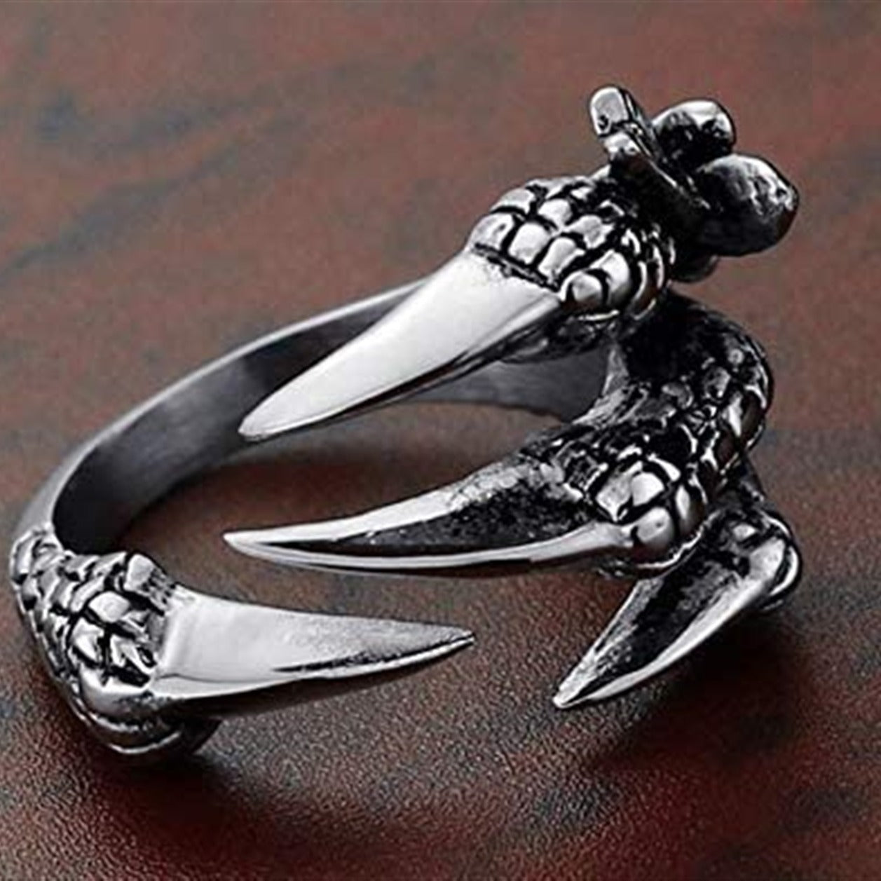 Add a touch of edge to your Halloween look with this Titanium Steel Dragon Claw Eagle Skull Ring. A perfect accessory for men's Halloween costumes.