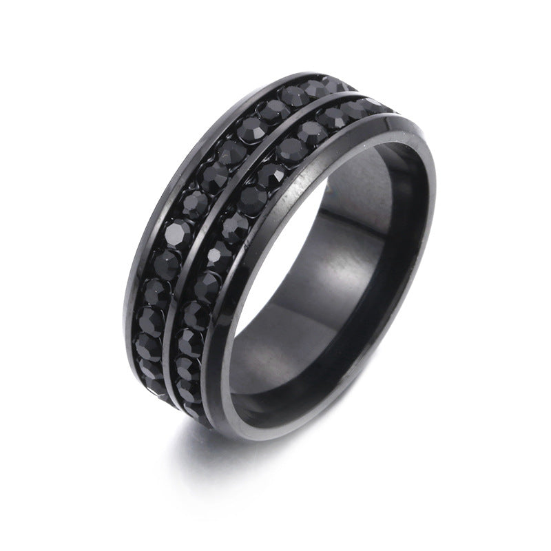 This titanium steel ring features double artificial diamond zircon accents, making it a stylish and elegant accessory. Perfect as a gift for a loved one.