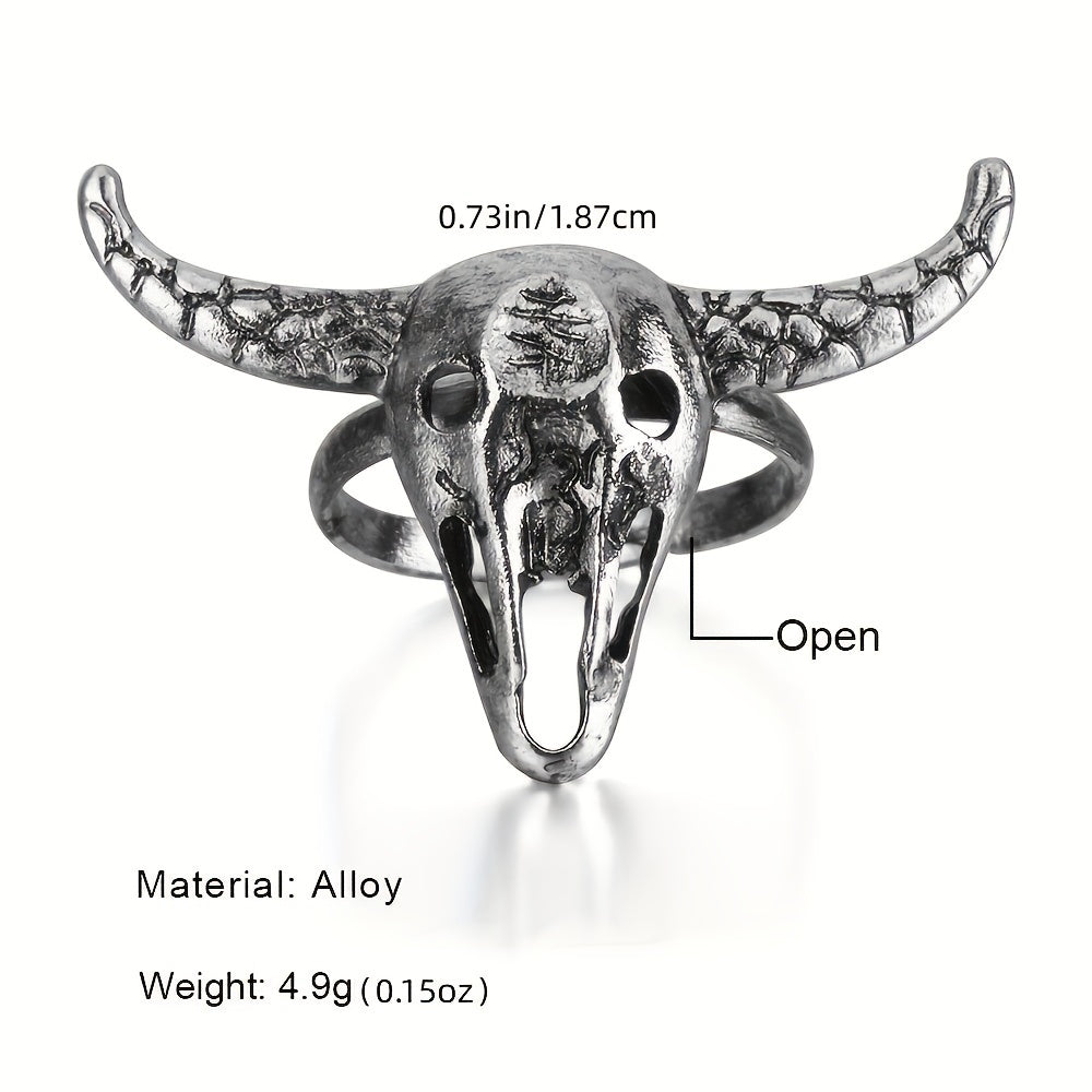 Vintage Bull Skull Ring Adjustable Cuff Punk Style Jewelry
