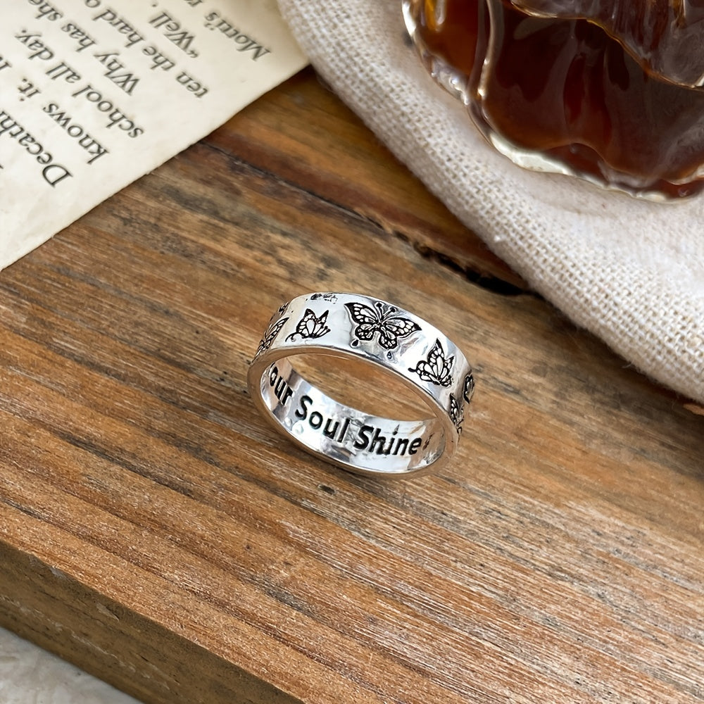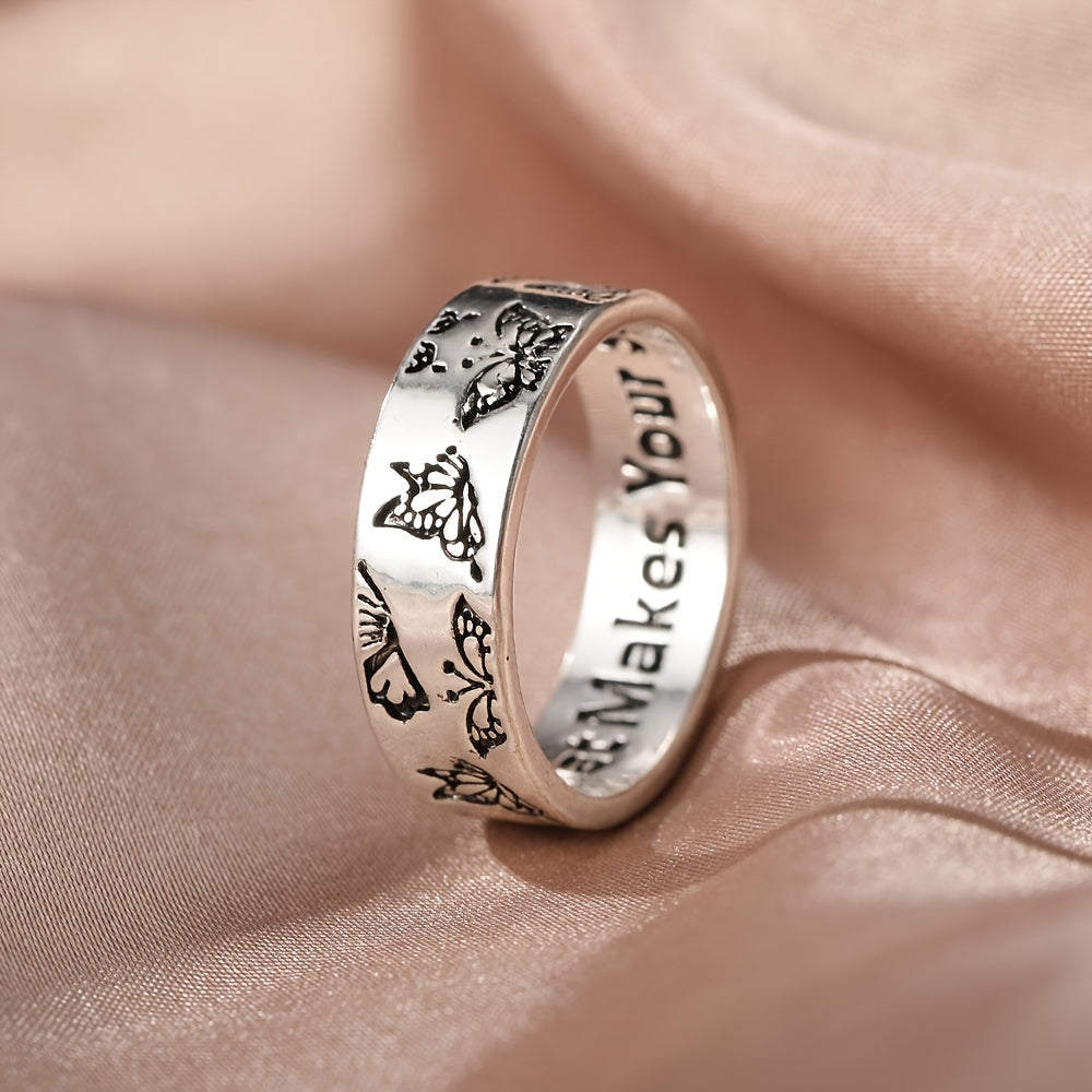 This vintage ring features exquisite butterfly engraving for a unique and elegant look.