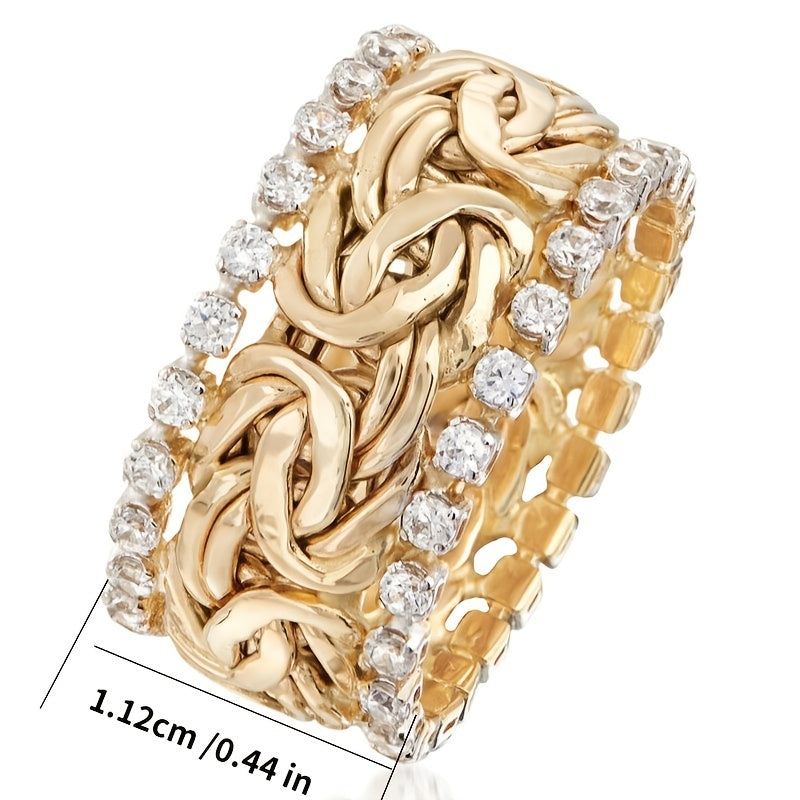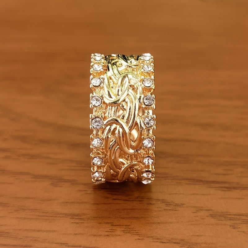 Add a touch of vintage charm with this golden braided ring featuring rhinestones. Perfect for men who appreciate unique jewelry pieces.