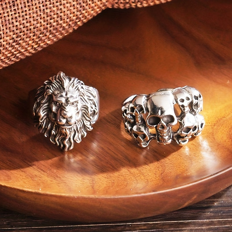 Add a touch of vintage style to your look with this unique lion skull ring, featuring a hollowed open design.
