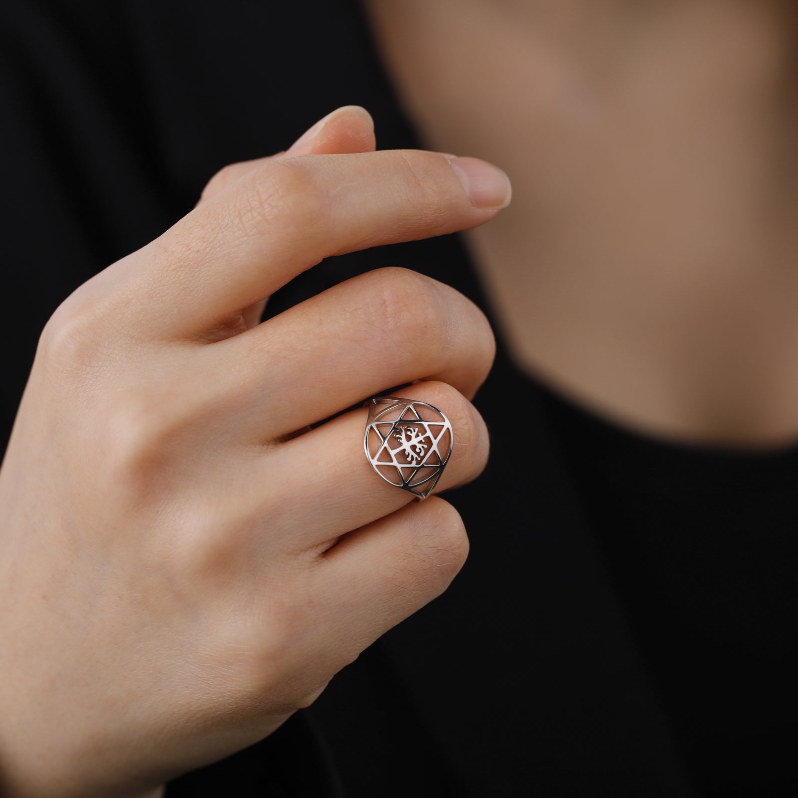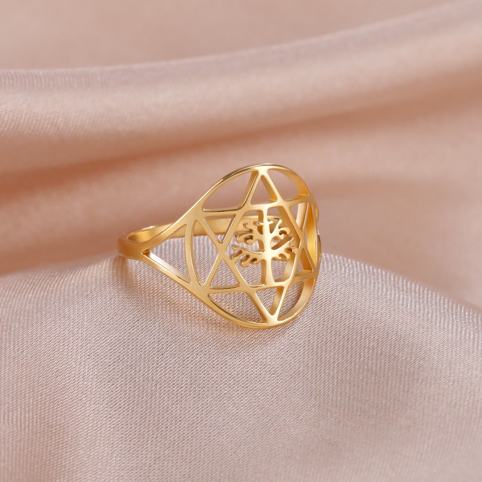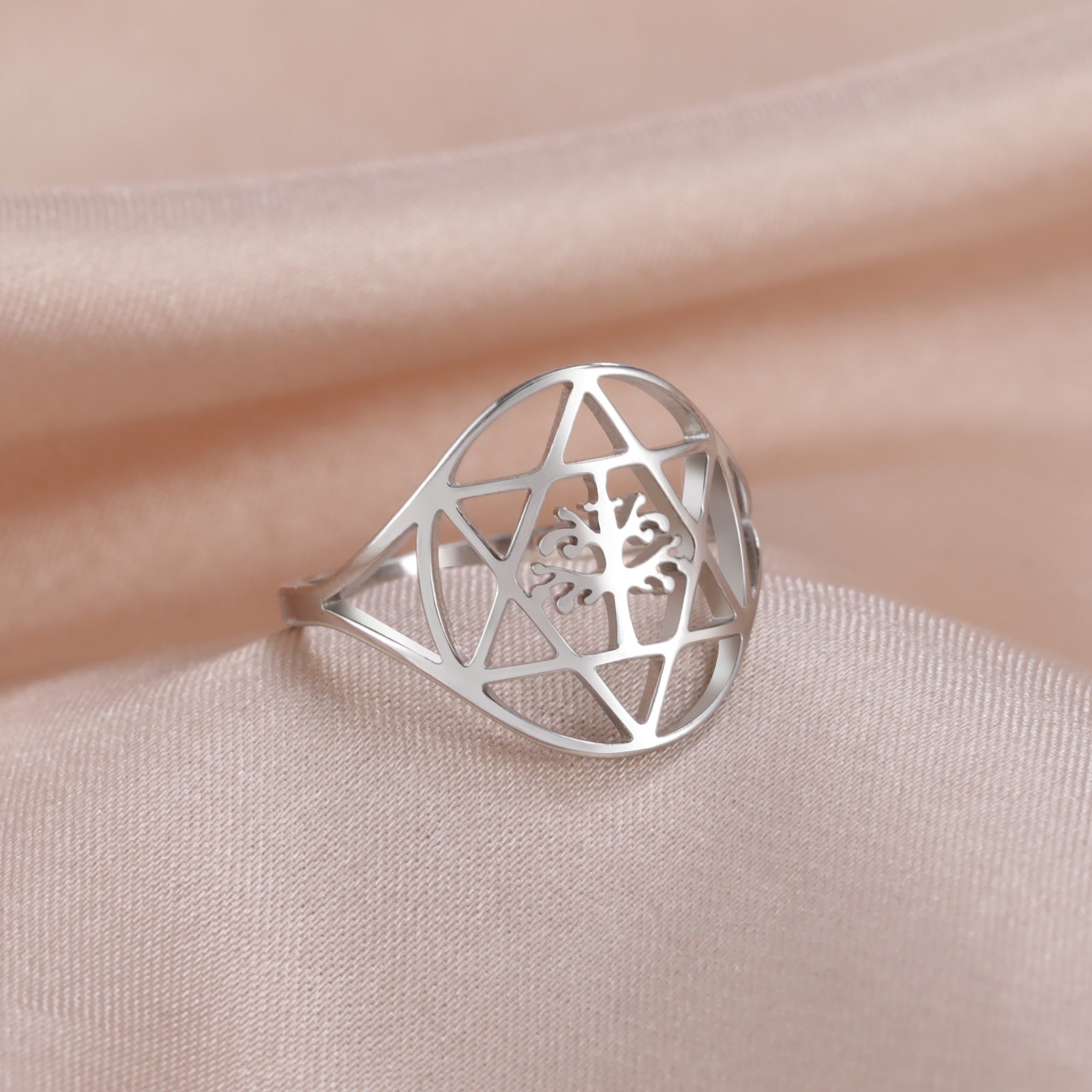Beautifully crafted vintage men's ring featuring hollow out star and tree of life design made of stainless steel, perfect for couples.