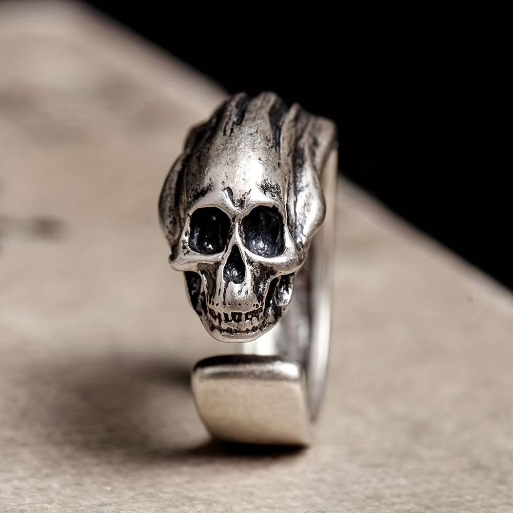 This vintage style men's ring features a skull design with a punk twist. The open adjustable design makes it a versatile accessory for any casual outfit. Makes a great gift for men who love unique jewelry pieces.