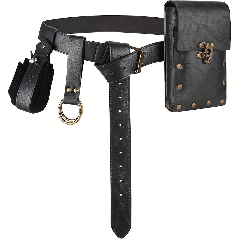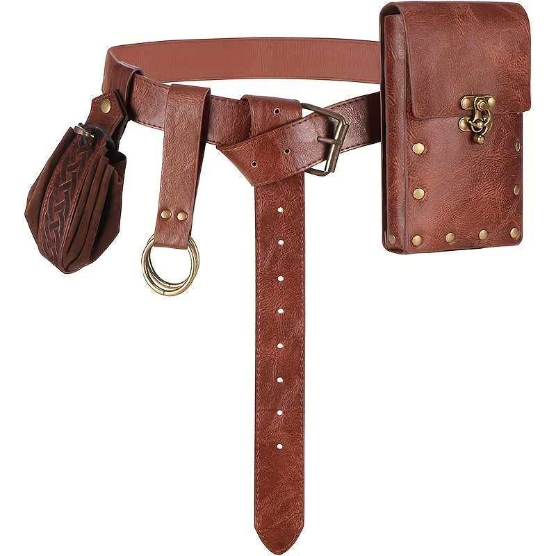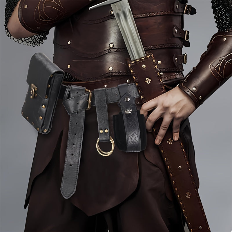 Enhance your Viking role play with this Renaissance-inspired set including a keychain wallet and pouches. Perfect for LARP and Halloween activities.