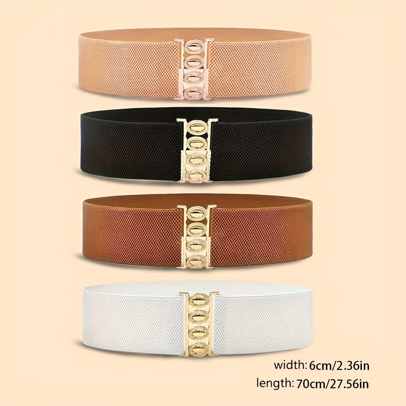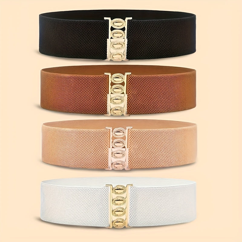 These 4 wide belts are perfect for adding a touch of bohemian style to your outfit. Made of elastic knit with metal snap zinc alloy closures, they are both functional and stylish. Ideal for daily wear or parties.