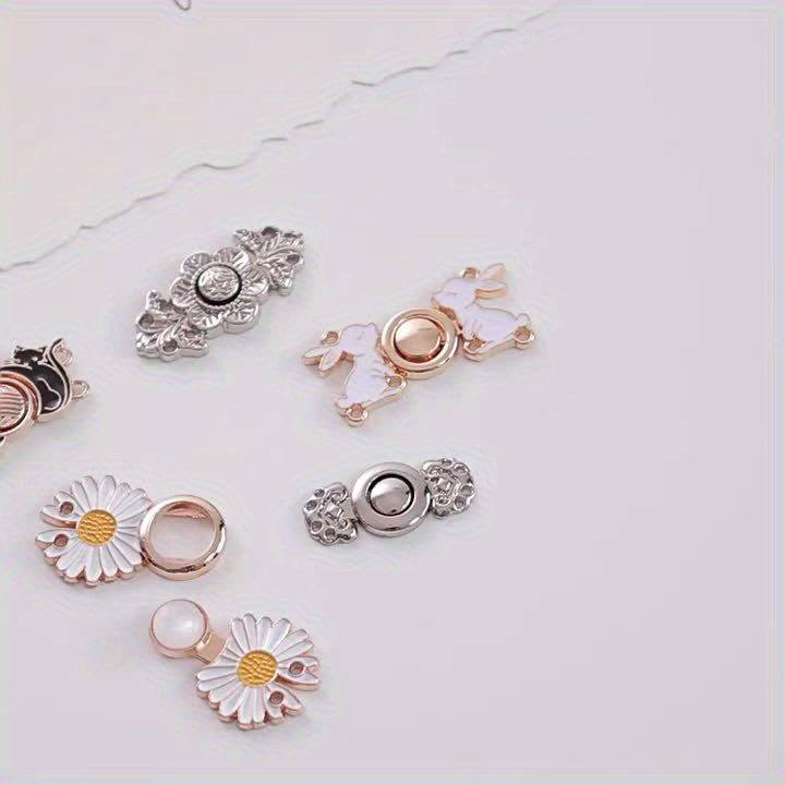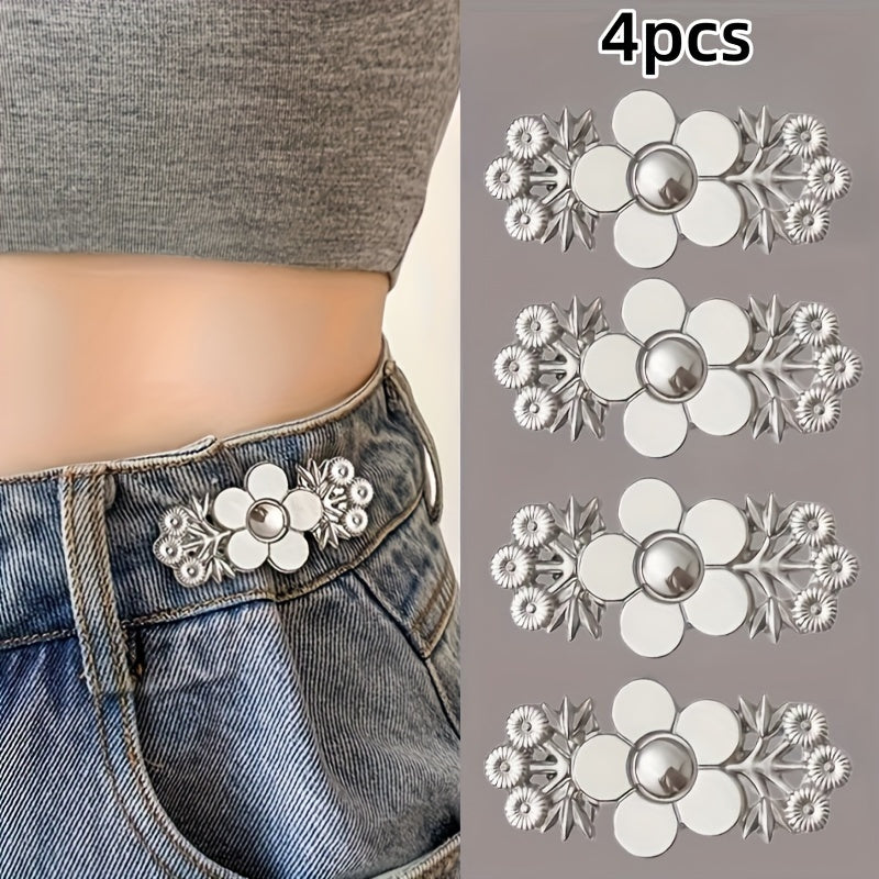 Enhance the fit of your pants instantly with this 4-piece set of floral pattern denim waist tighteners. Featuring seamless metal pant waist adjusters with detachable denim buckles.