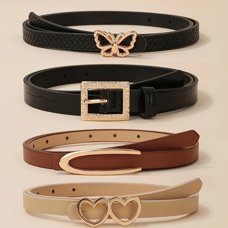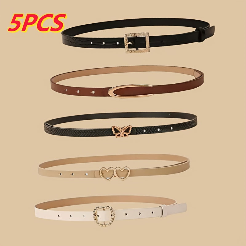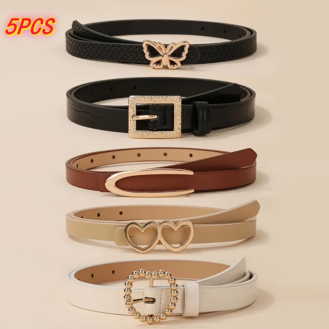 These 5 women's belts feature a casual and sweet style, perfect for daily and weekend wear. They are versatile for jeans and can be worn on mature and college occasions. Made from non-textile weave material, these belts do not have feathers.