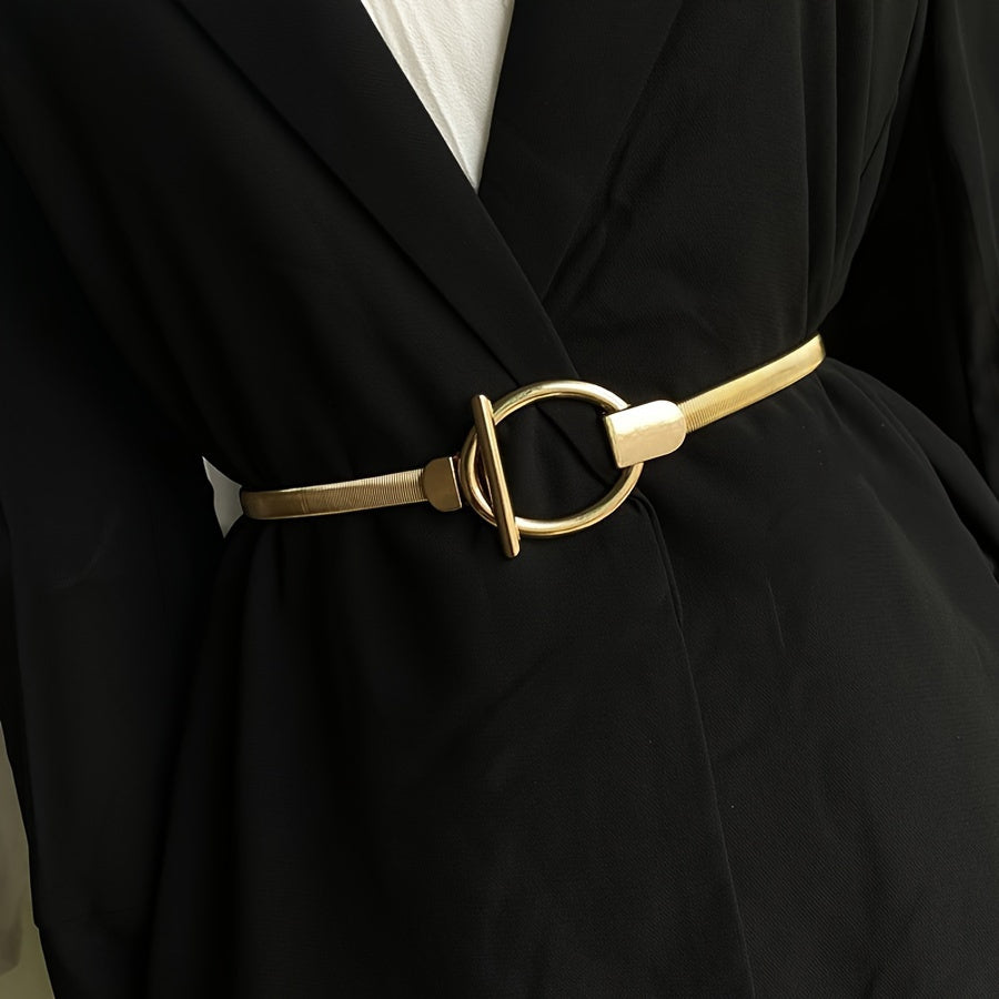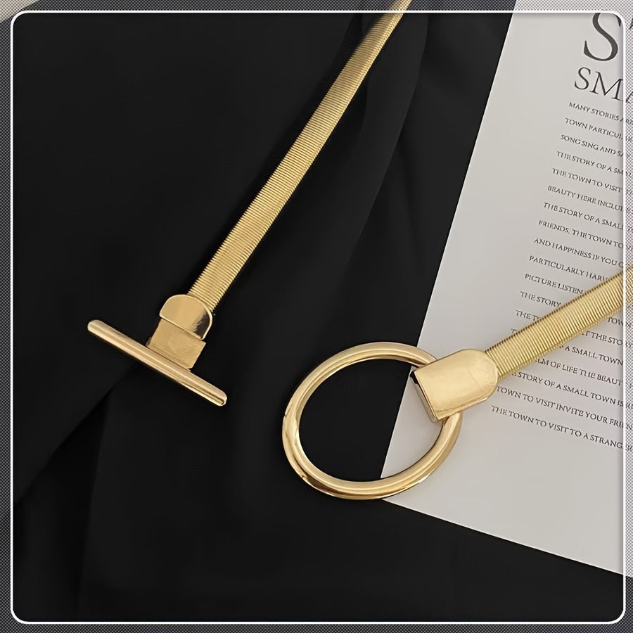 Add a touch of vintage charm to your outfits with this golden metal chain belt. Perfect for dresses and casual looks, this slender waist accessory is adjustable for a comfortable fit.