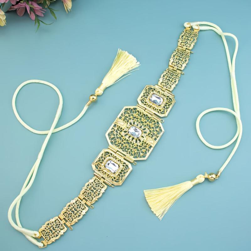 Enhance your Middle Eastern look with this beautifully handcrafted kaftan belt featuring Moroccan style and intricate rope tassel design.