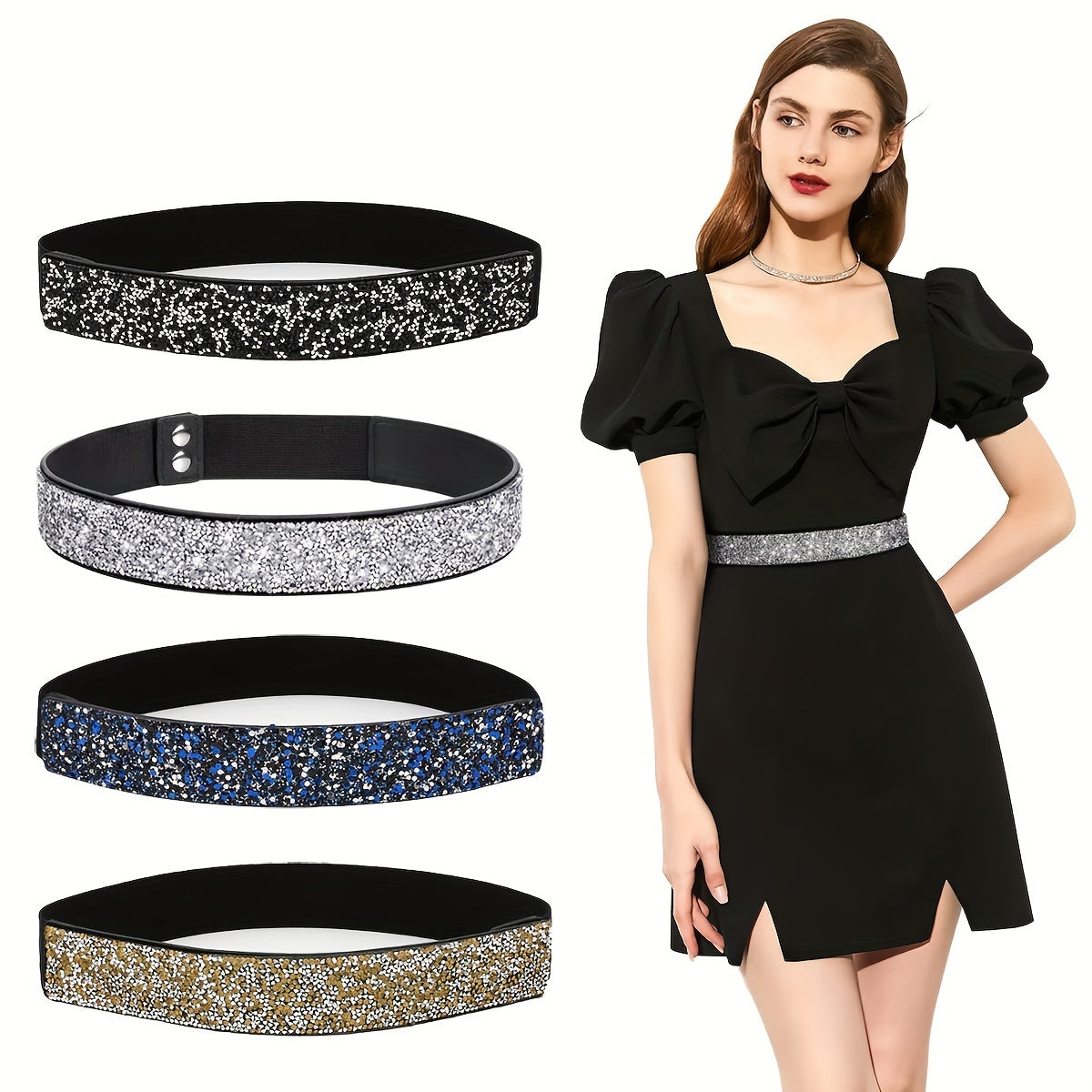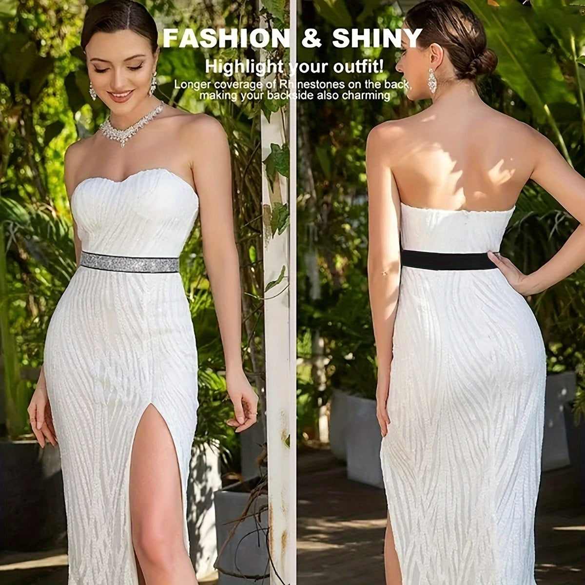 Add some sparkle to your outfits with this stunning rhinestone elastic waistband. Perfect for adding a touch of glamour to any look.