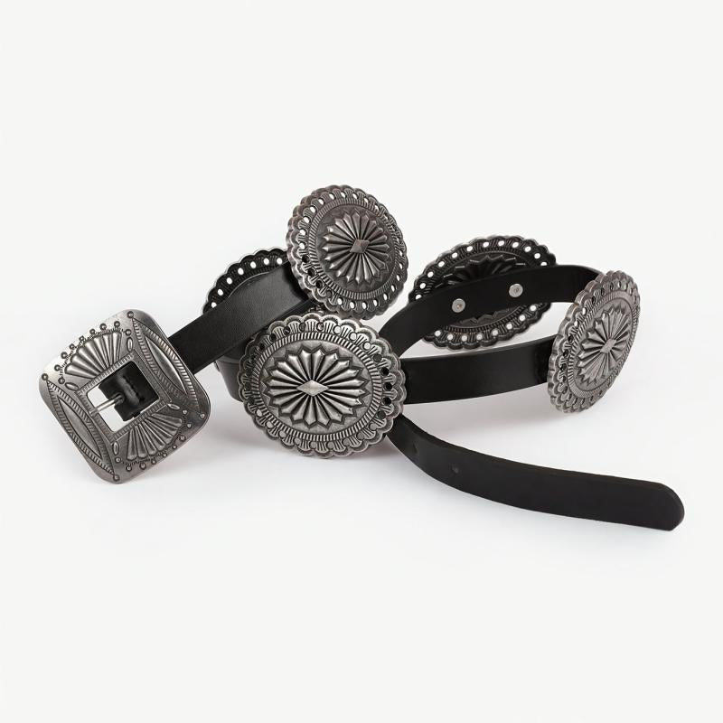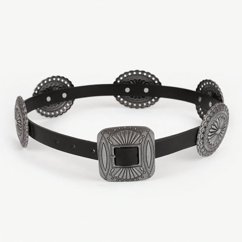 This women's belt is perfect for everyday wear with its bohemian style design. It features a round shape and an elastic waist for a comfortable fit.