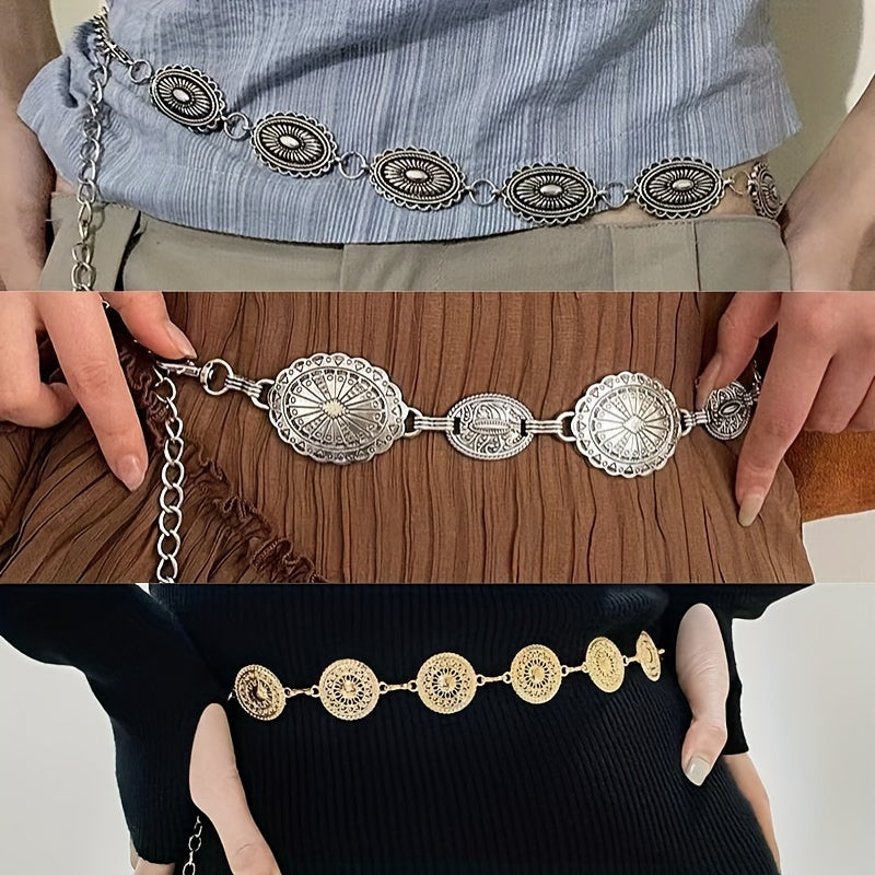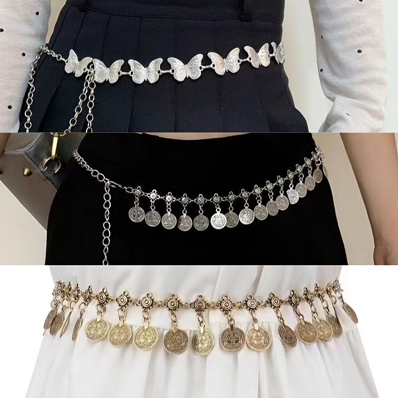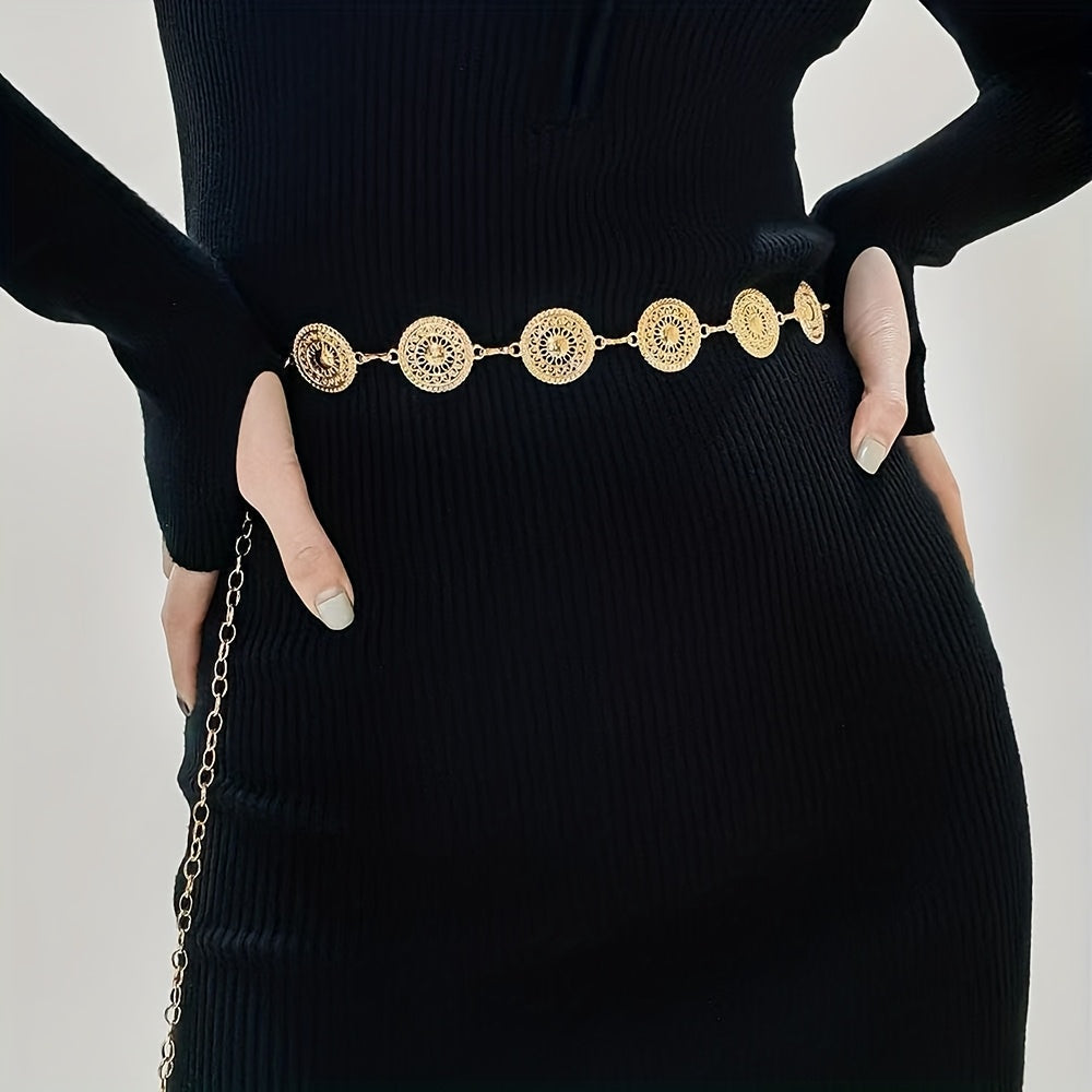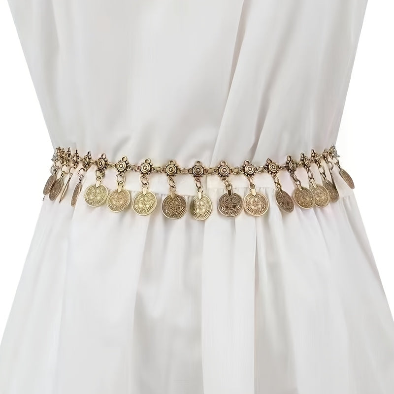 Add a touch of vintage Bohemian style to your outfit with this waist chain set featuring a hollow tassel design. Made from non-woven fabric, perfect for festive occasions.