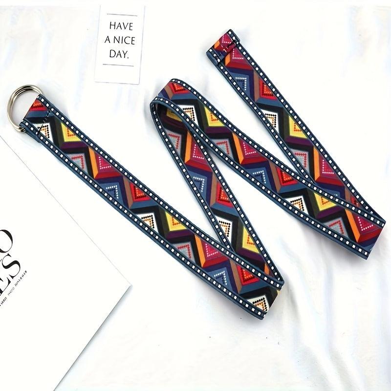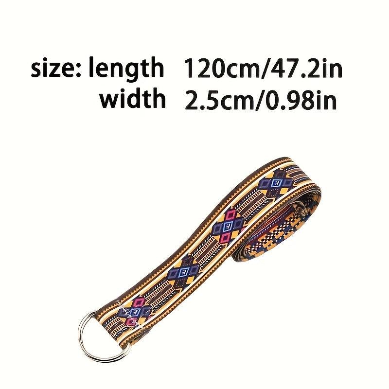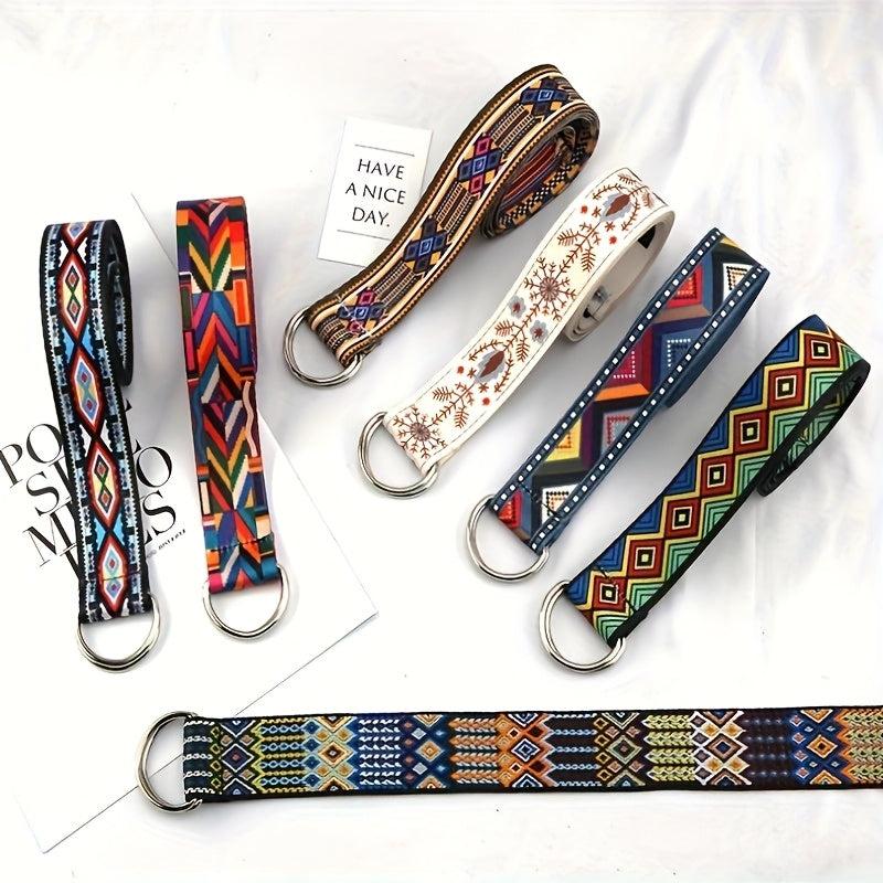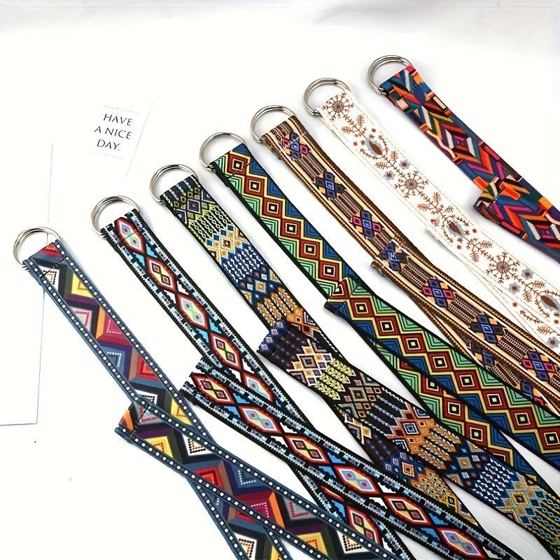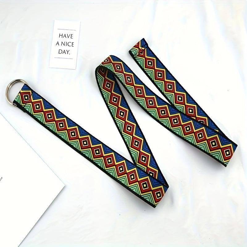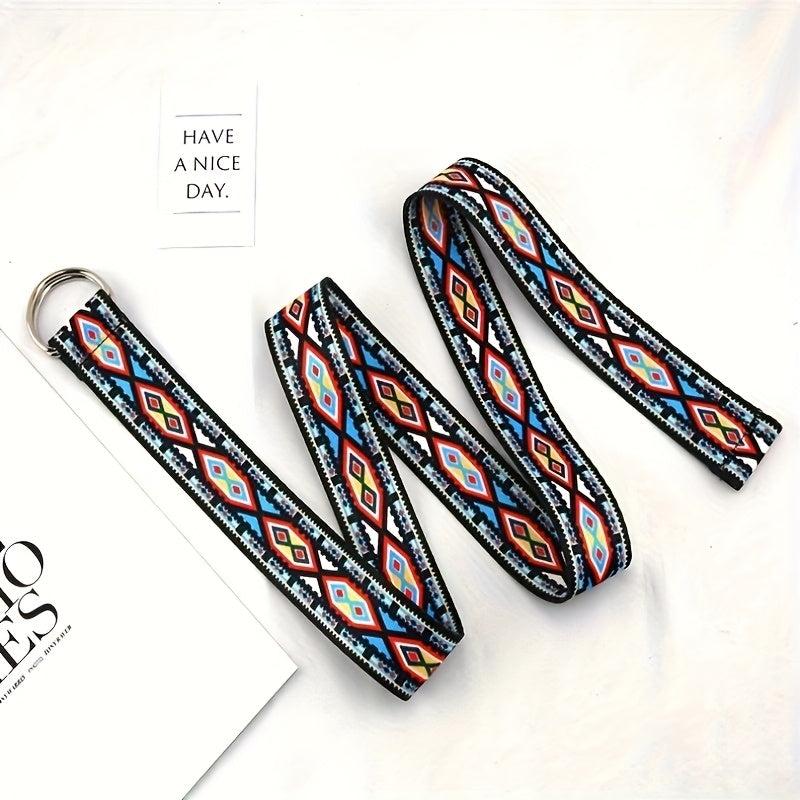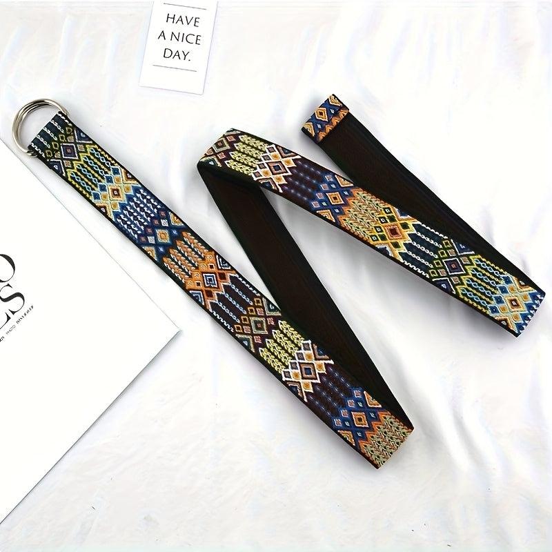Add a touch of boho chic to your outfit with this stylish belt featuring geometric and floral patterns. Perfect for casual wear with jeans.