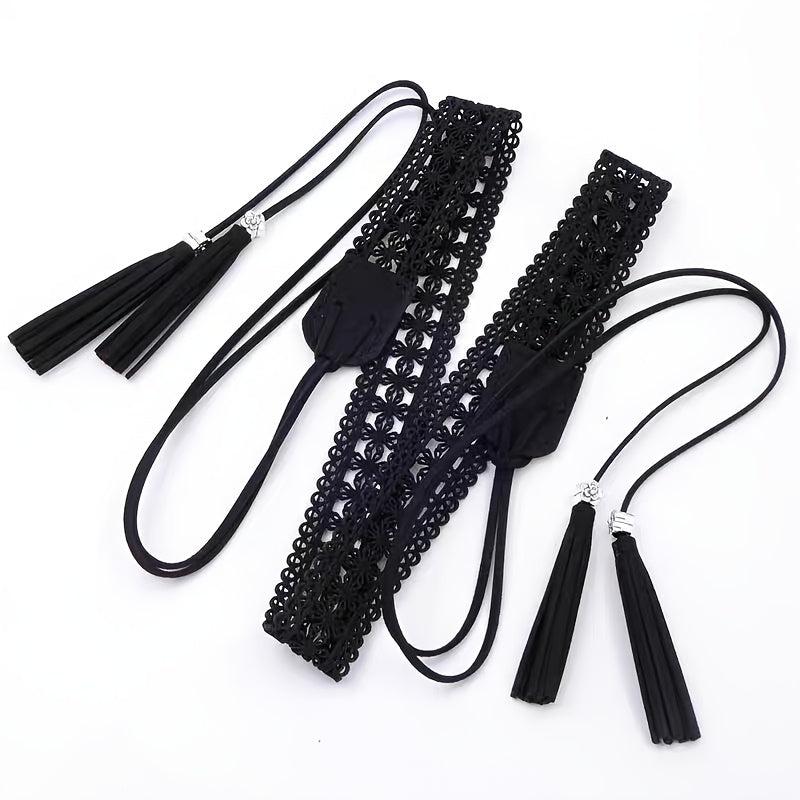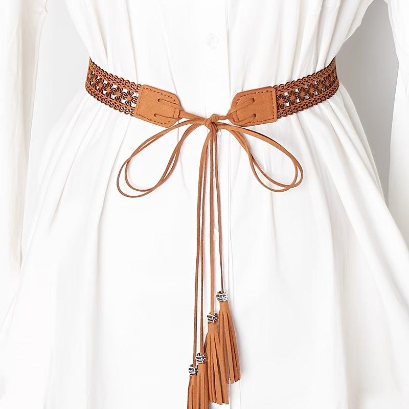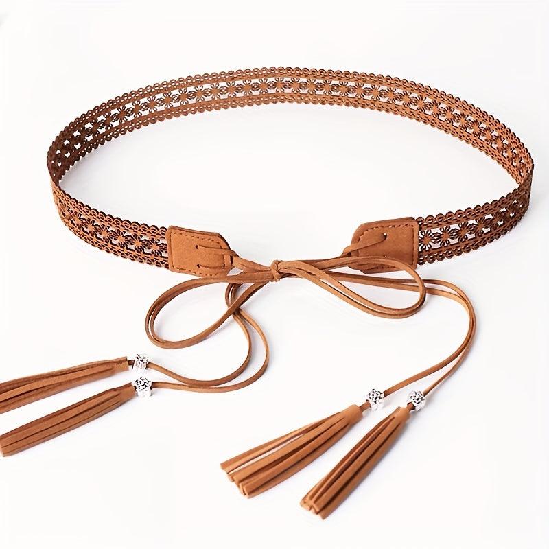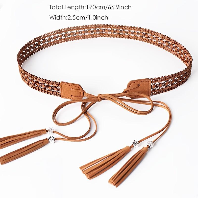 Boho Vintage Style Hollow Microfiber Leather Waist Rope with Tassel