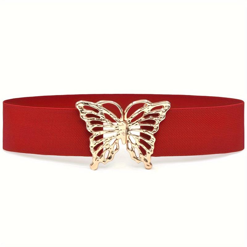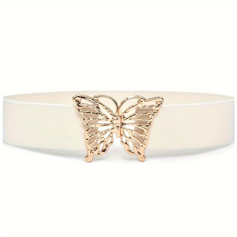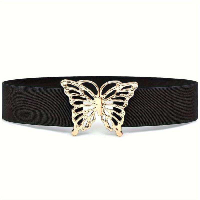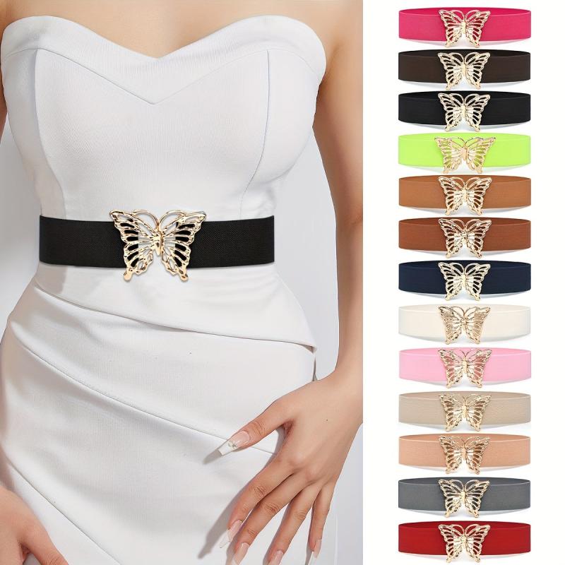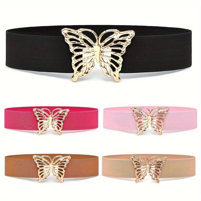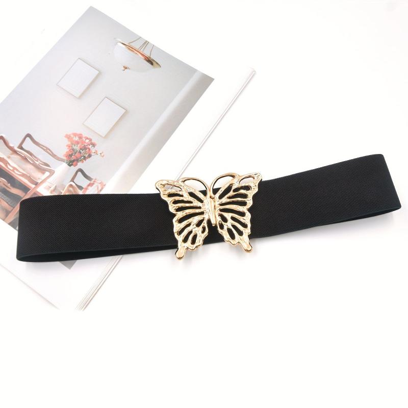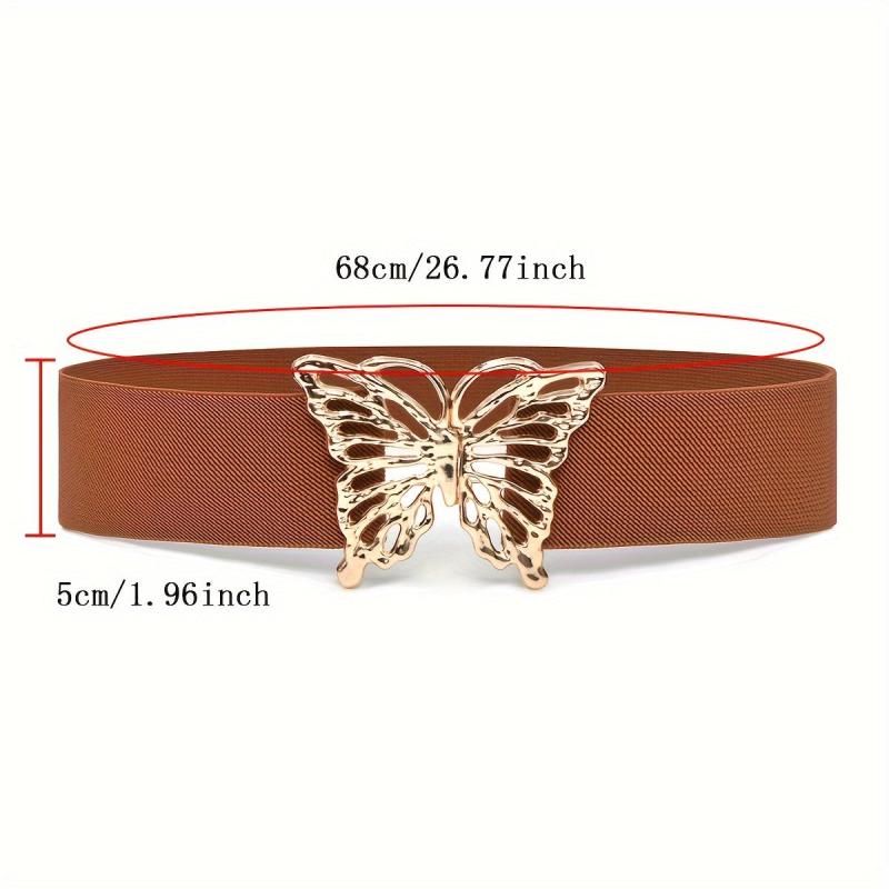 This waistband features a butterfly buckle design, making it a stylish accessory for women's coat and dress. It is elastic and wide, providing a comfortable and decorative look.