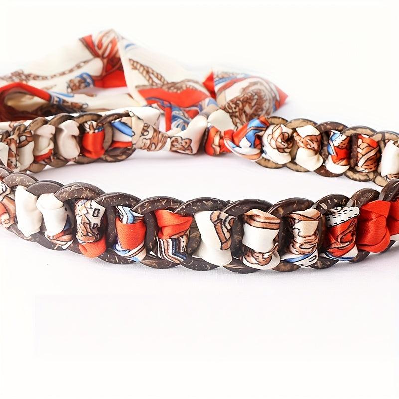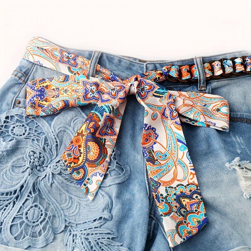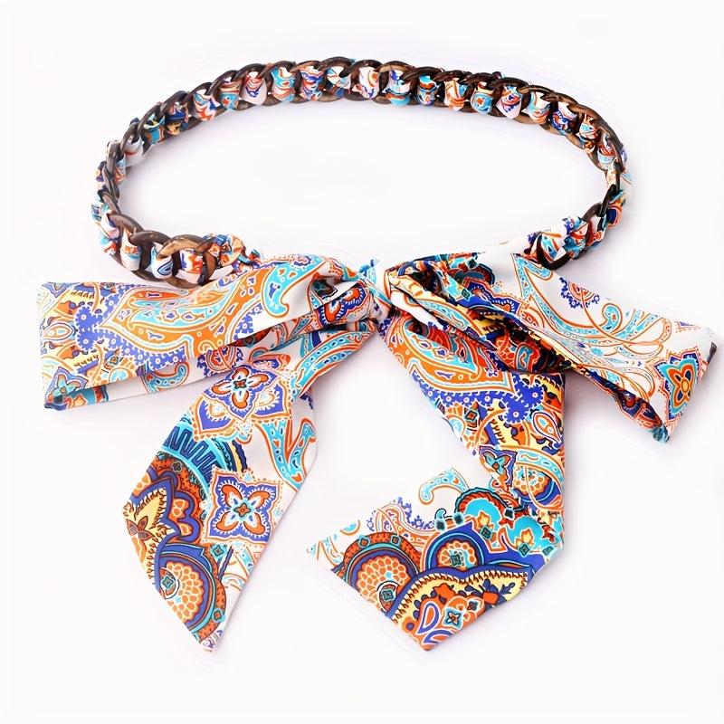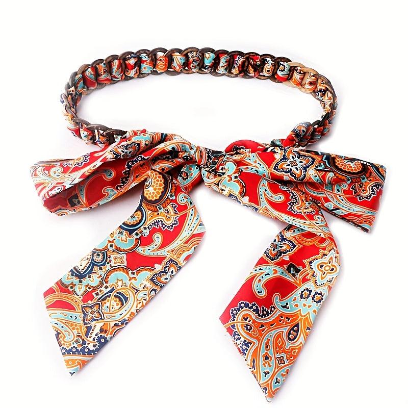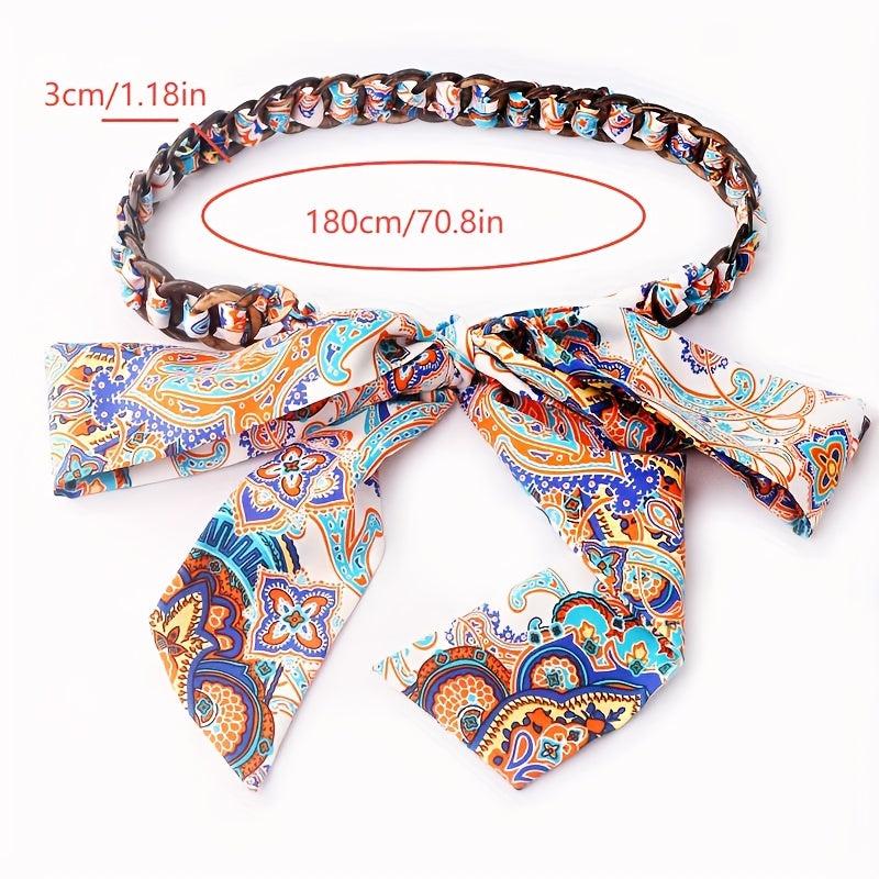 Add a pop of color and style to your outfits with this colorful scarf belt. This versatile accessory can be worn as a belt, a waist accent for dresses, a skirt tie, or a stylish addition to your shirt.