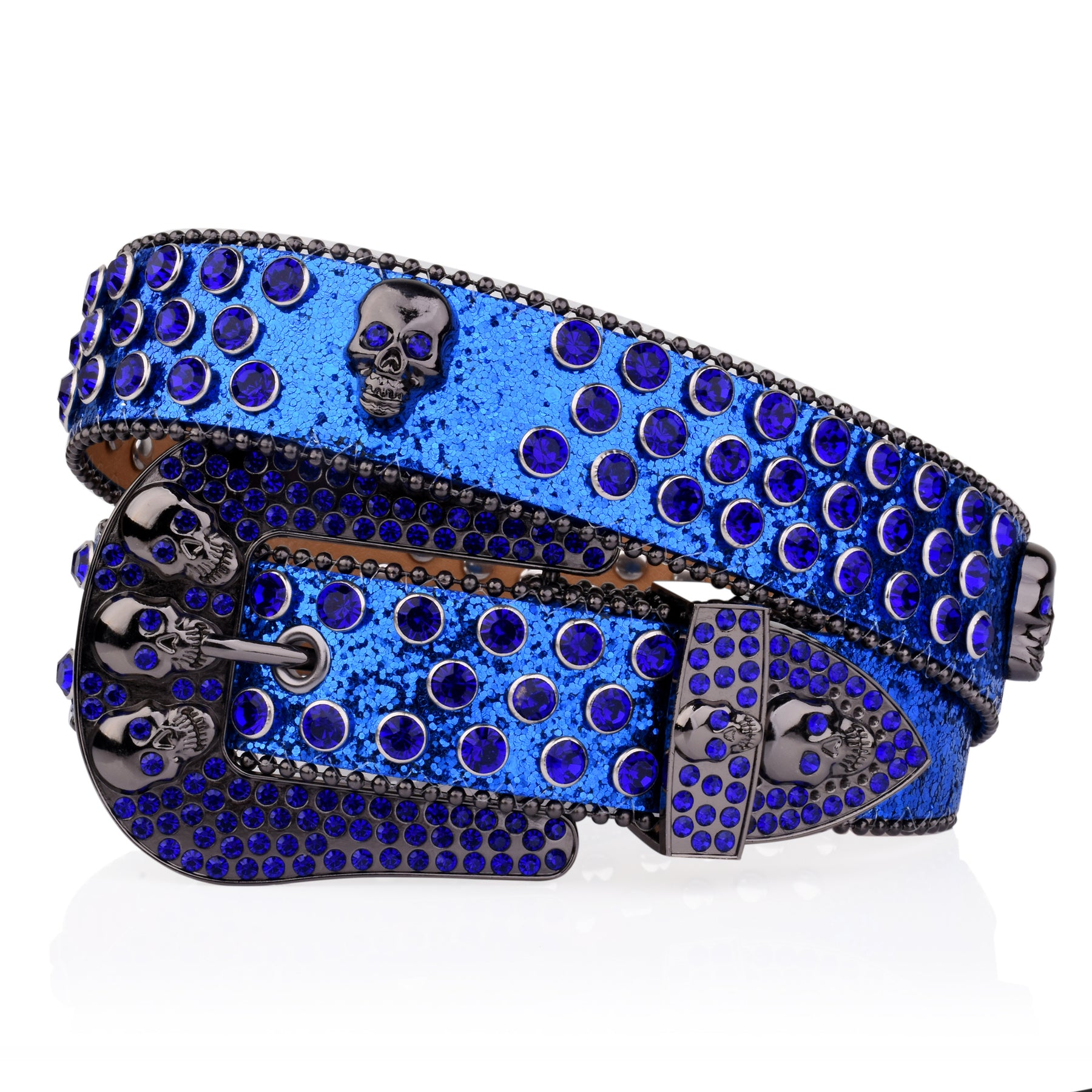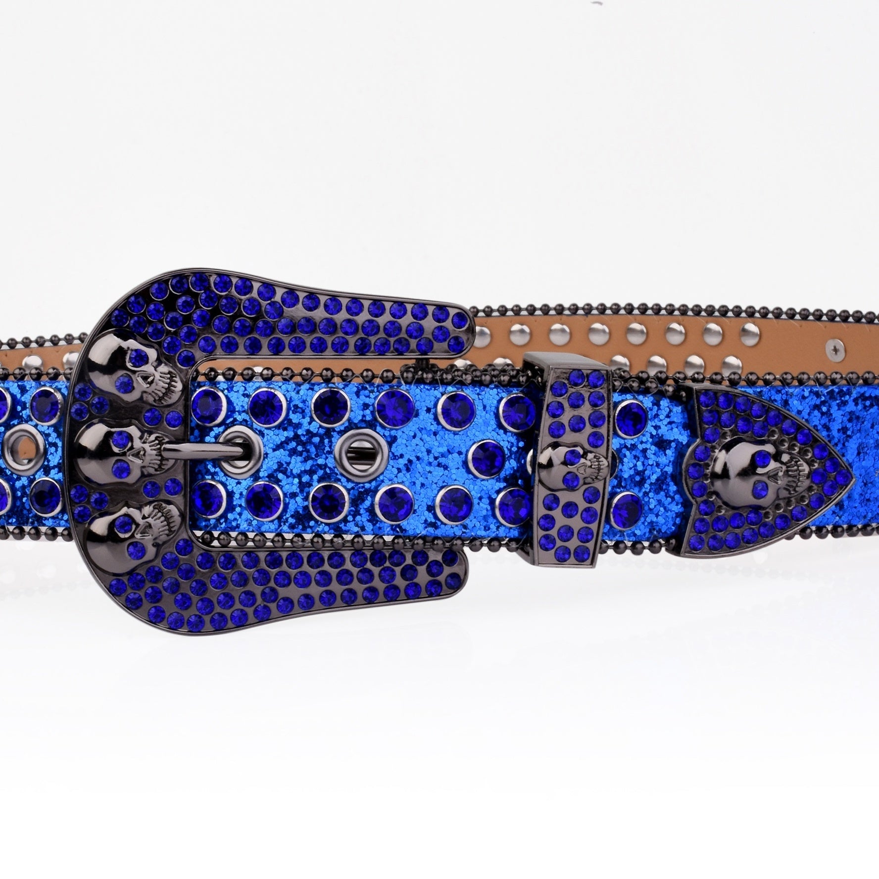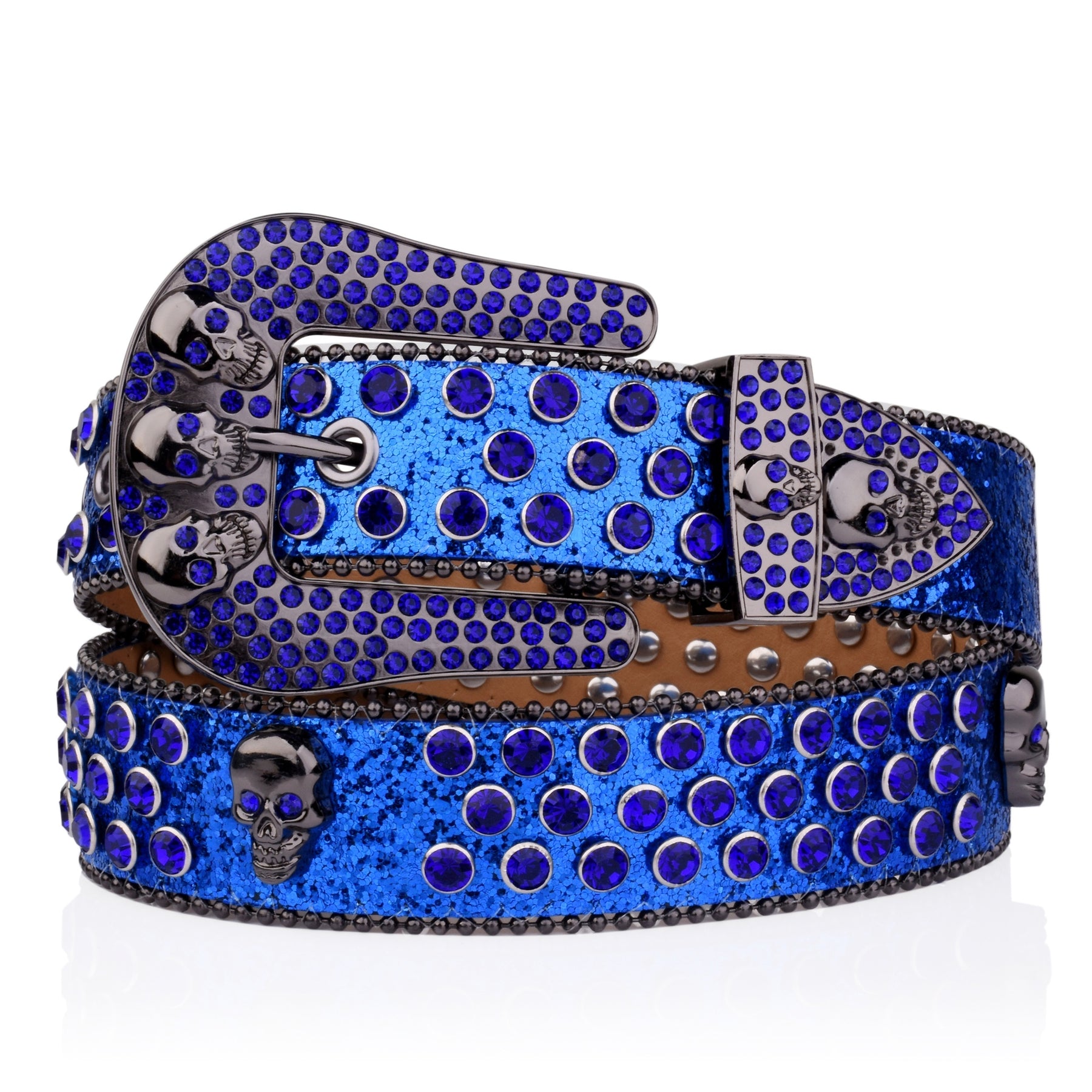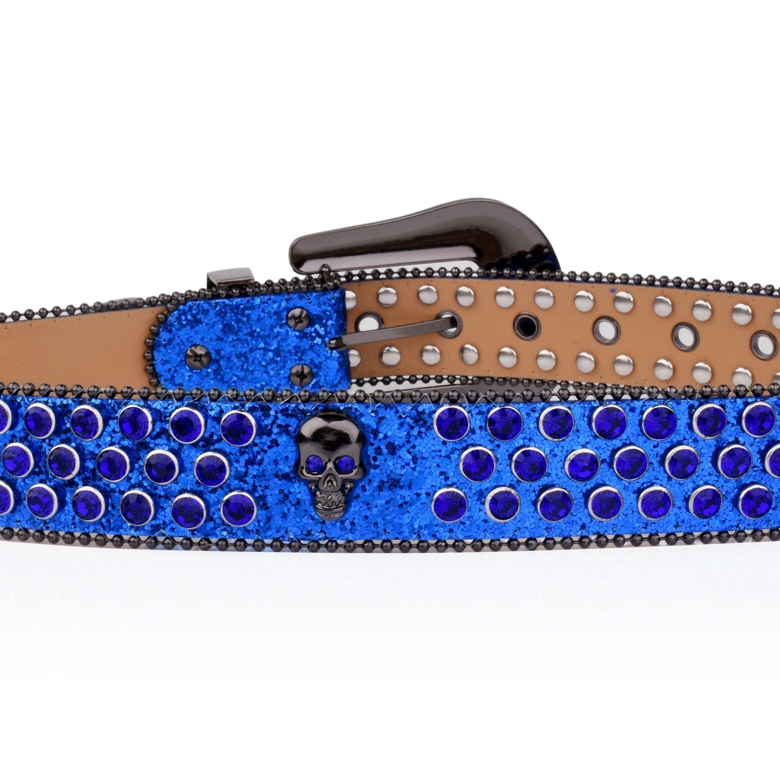 Add a touch of punk style to your outfit with this rivet belt featuring a skull design. The rhinestone decoration and glitter details make it stand out in the crowd. Perfect for hip hop, jeans, pants, and a great addition to punk, western, or cowboy cowgirl looks.