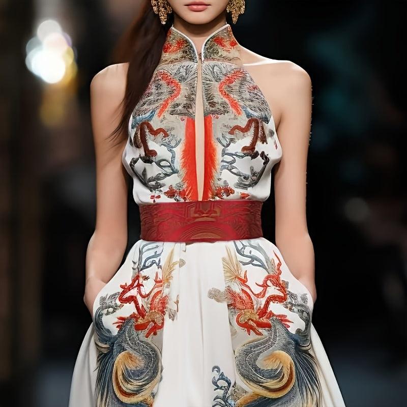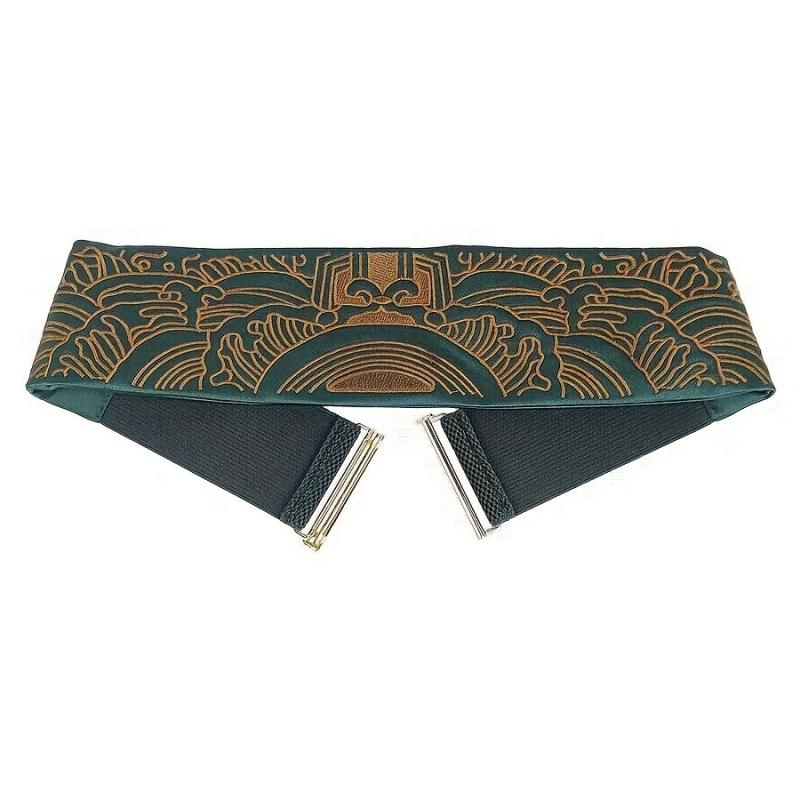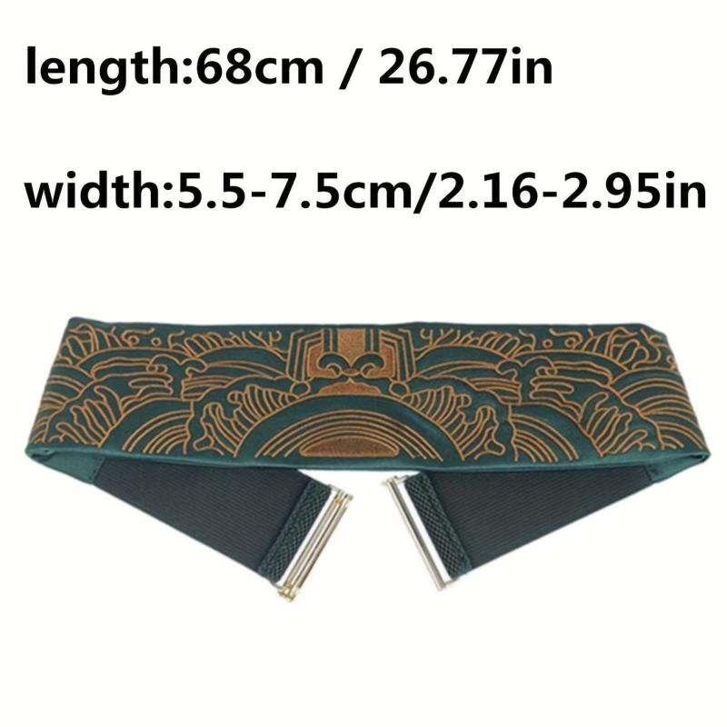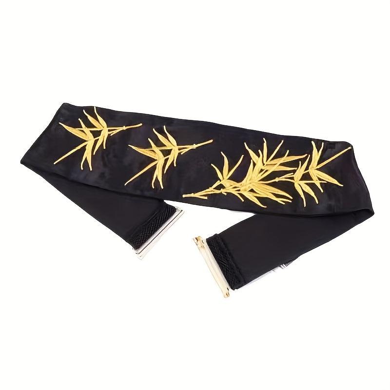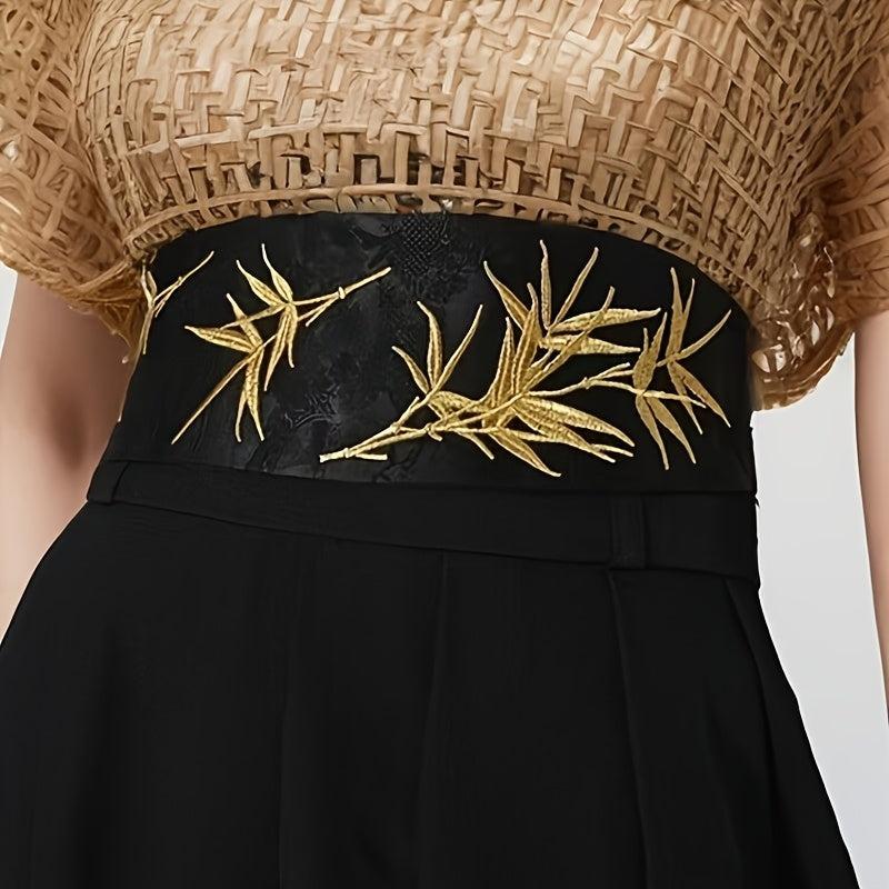 Perfect for parties, this wide embroidered waist belt features a stylish bamboo leaf design. Made with an elastic band, it's a fashionable outerwear accessory.