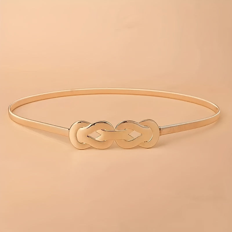 Add a touch of elegance to your outfit with this geometric knot elastic belt. Ideal for spring and summer, this metal belt is perfect for dressing up any ensemble.