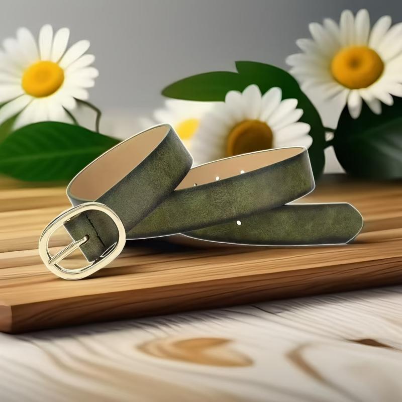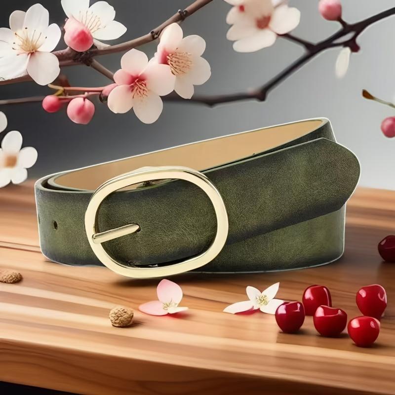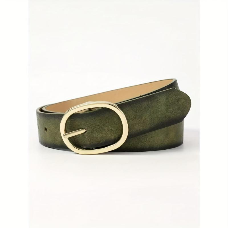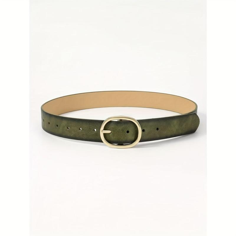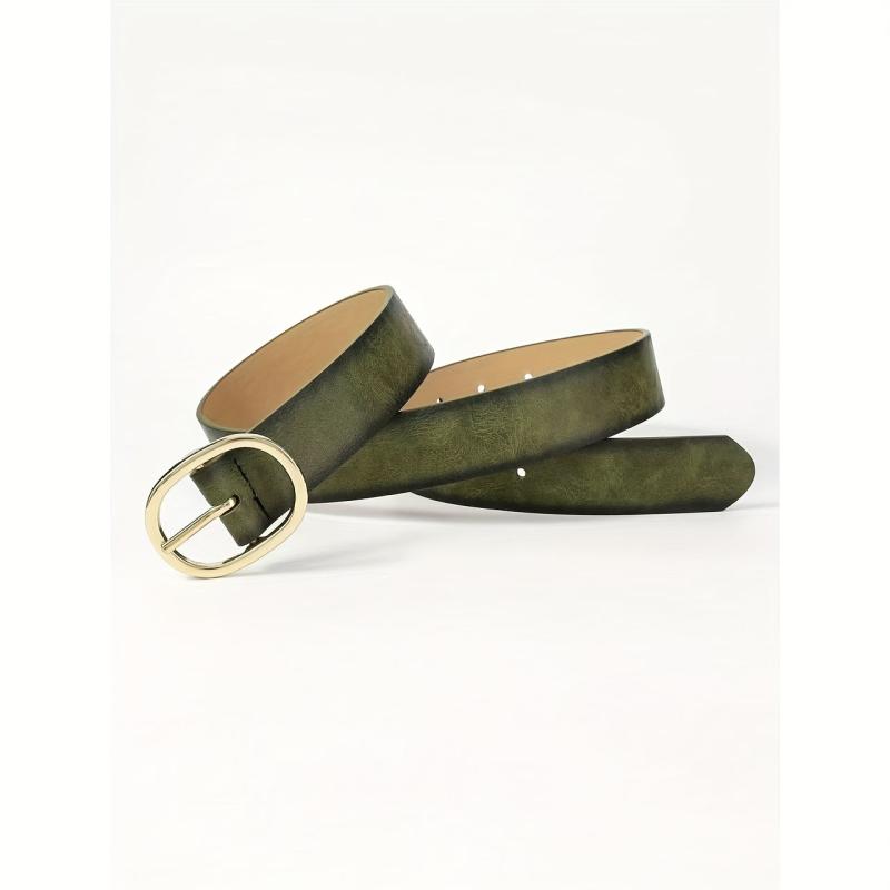 Elevate your look with this stylish unisex green faux leather belt. The upscale spray design and fashionable metal buckle make it perfect for everyday wear.