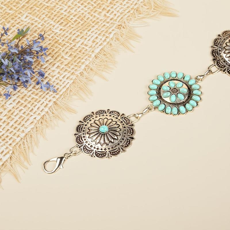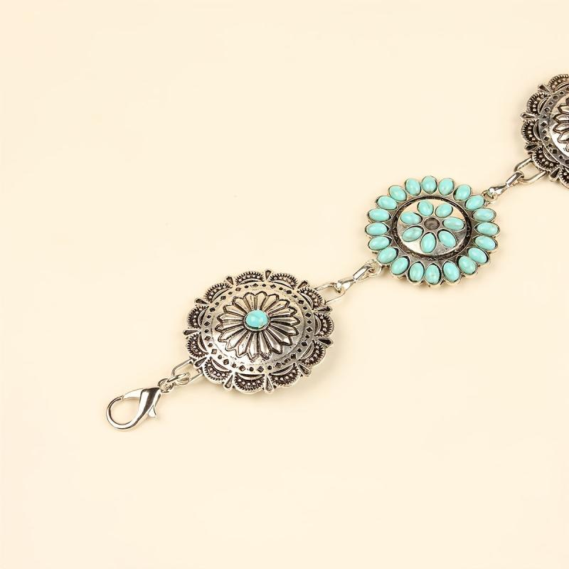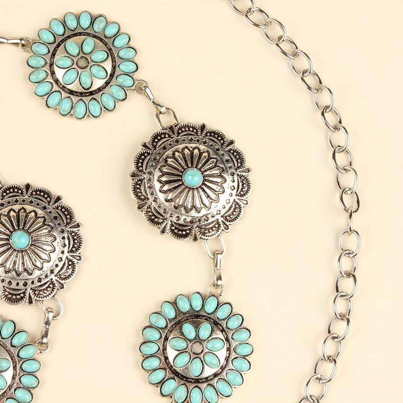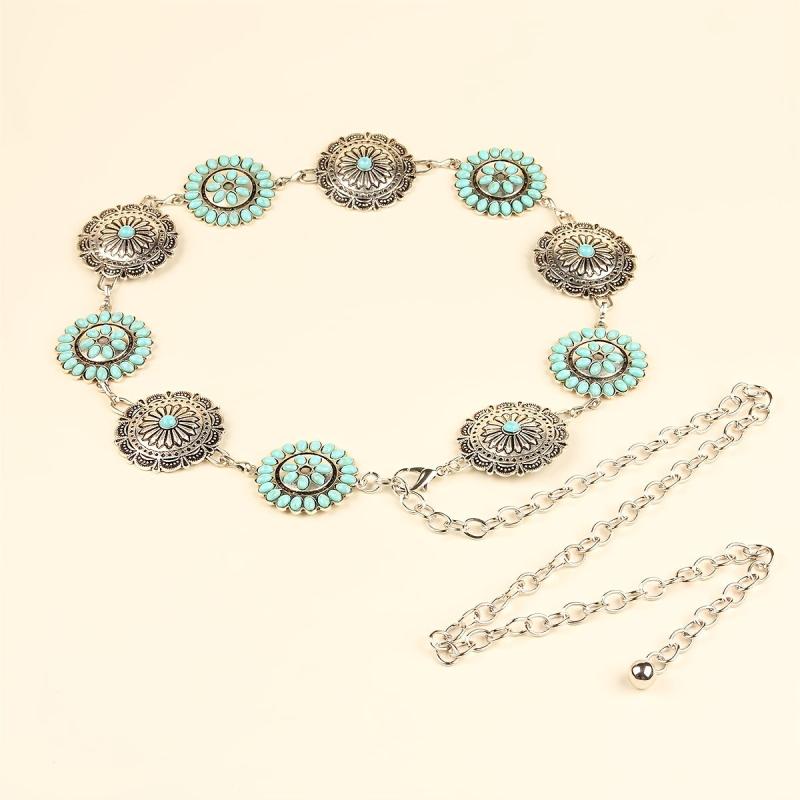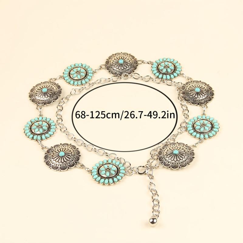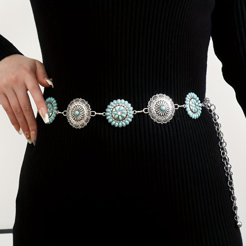 Elevate your look with this stylish metal slim belt featuring a beautiful floral design. This versatile accessory can be worn with dresses or pants to add a touch of elegance.