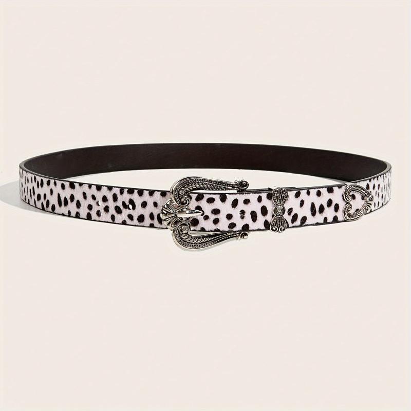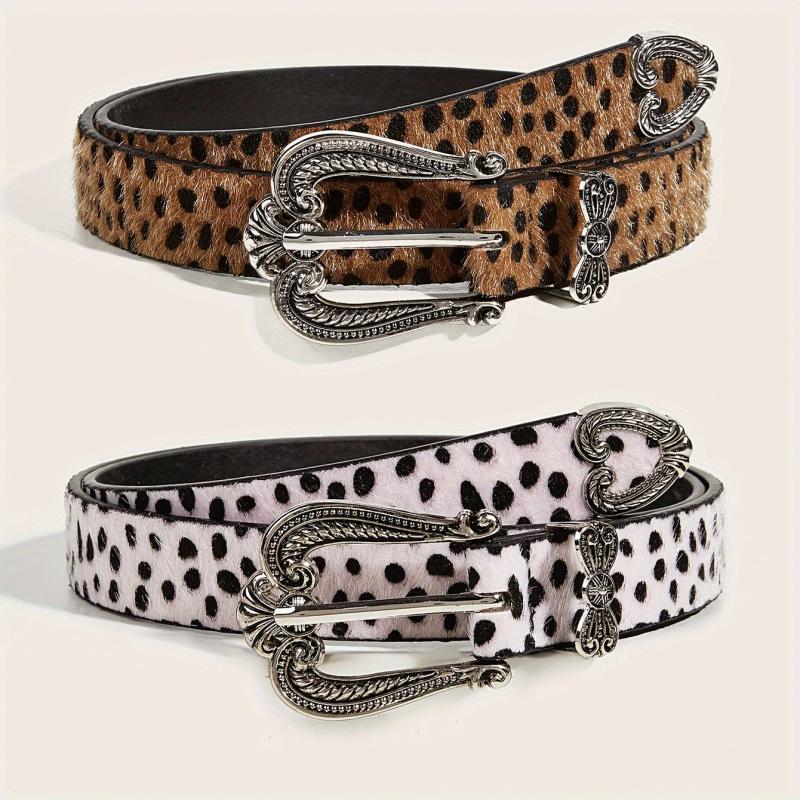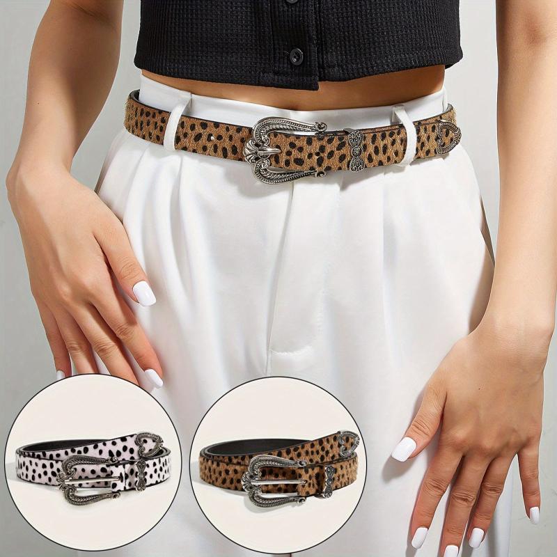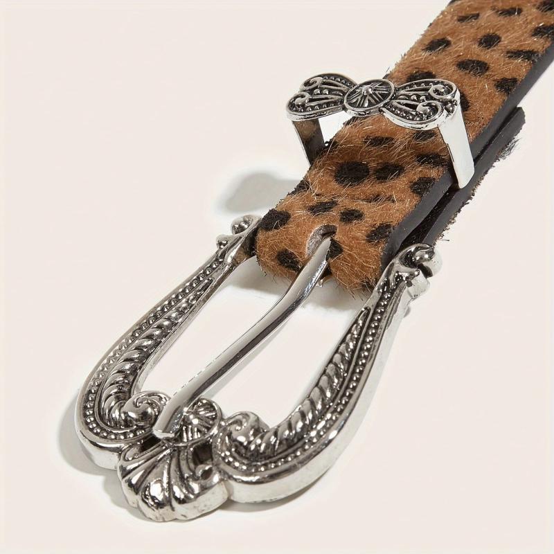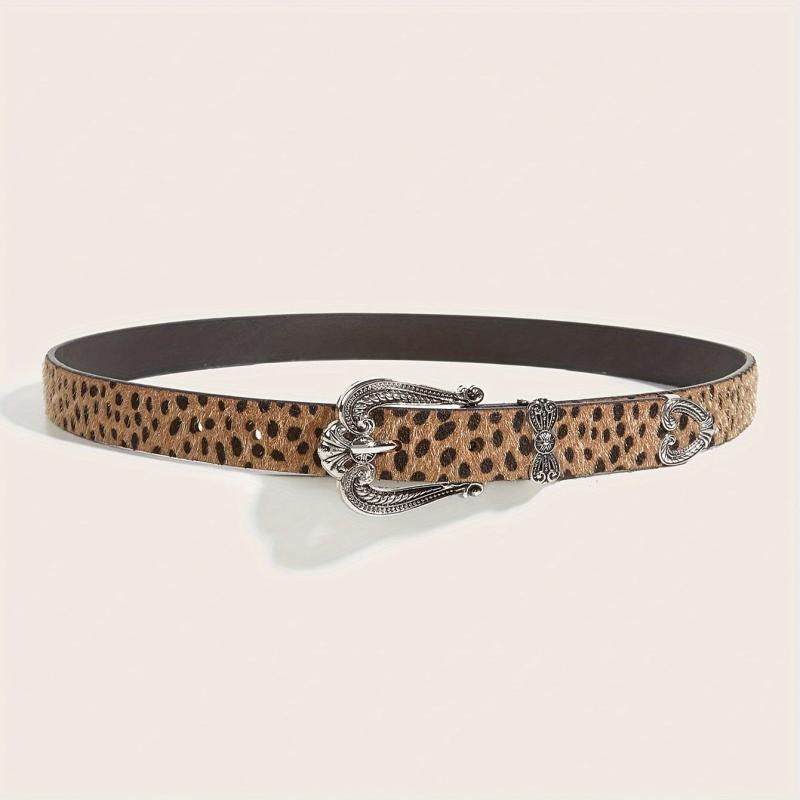 Add a touch of wild elegance to your outfit with this leopard print belt. The carved buckle adds a distinctive touch, making it suitable for both casual and formal occasions. Perfect for daily wear and commuting.