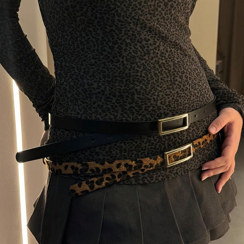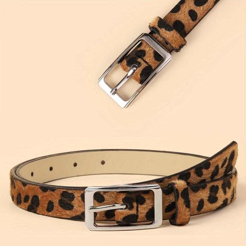 Add a touch of wild style to your outfits with this leopard print belt featuring a metallic buckle. Perfect for pairing with jeans, dresses, skirts, and casual wear.