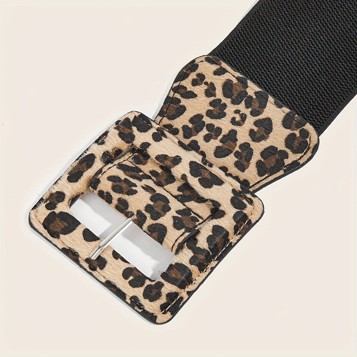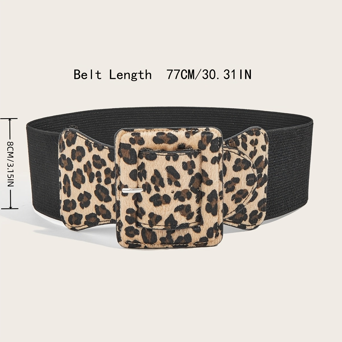 Add a touch of style to your outfits with this chic leopard print belt. Made with an elastic waist for comfort and a classic square buckle, this belt is perfect for dresses, shirts, outcoats, and suits. It makes a great gift for Christmas or any occasion.