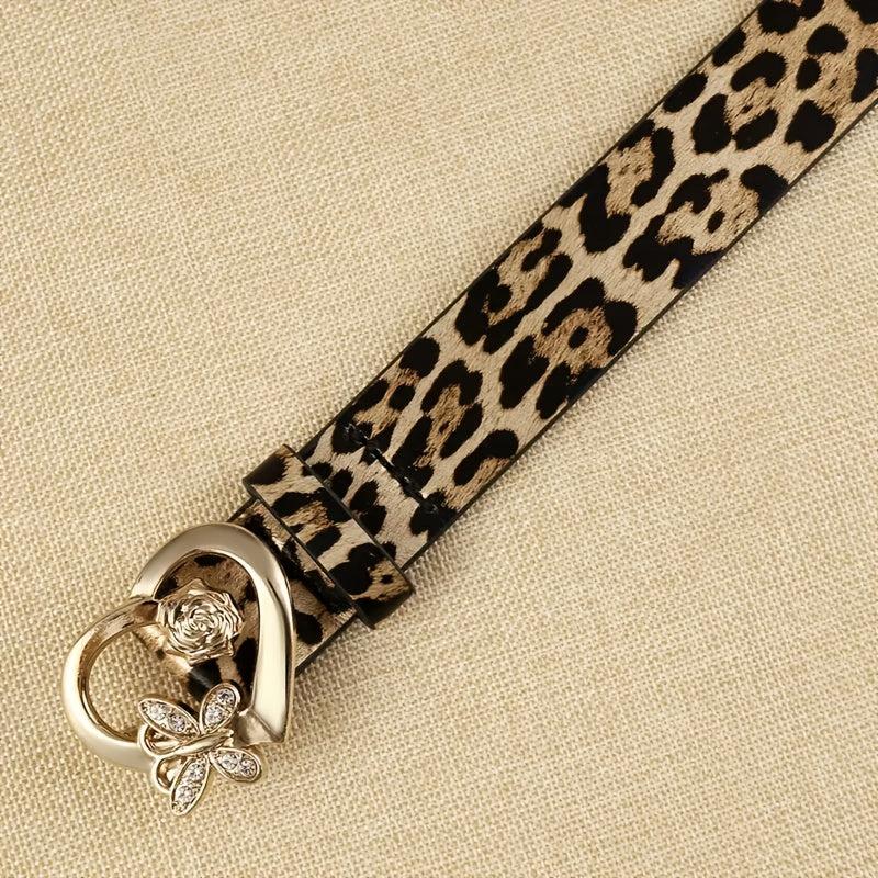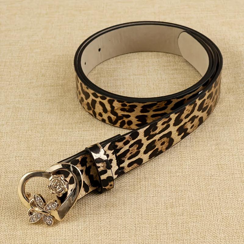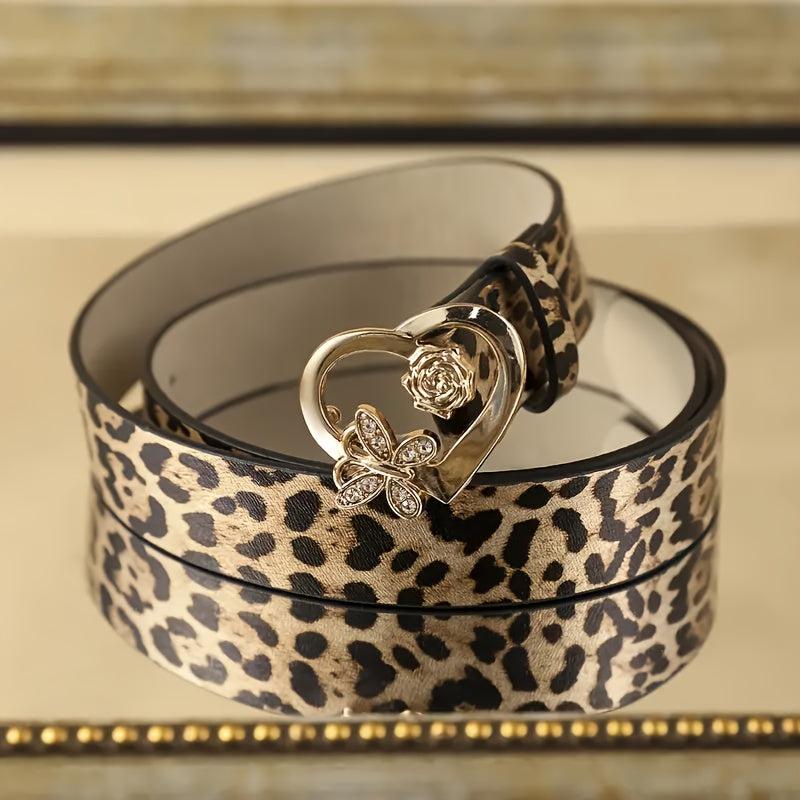 Elevate your casual look with this stylish Bohemian women's belt featuring a leopard print design and heart-shaped metal buckle.