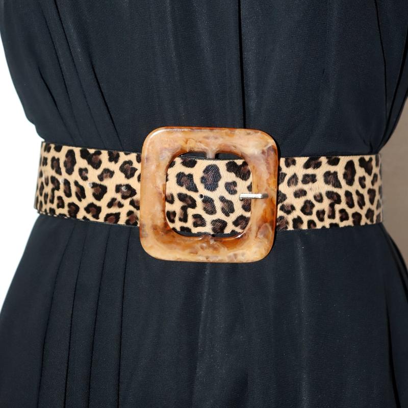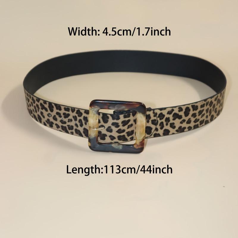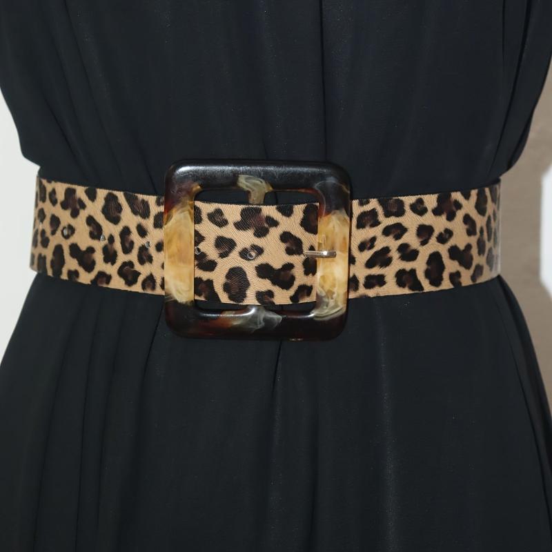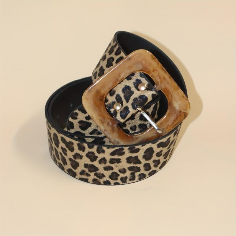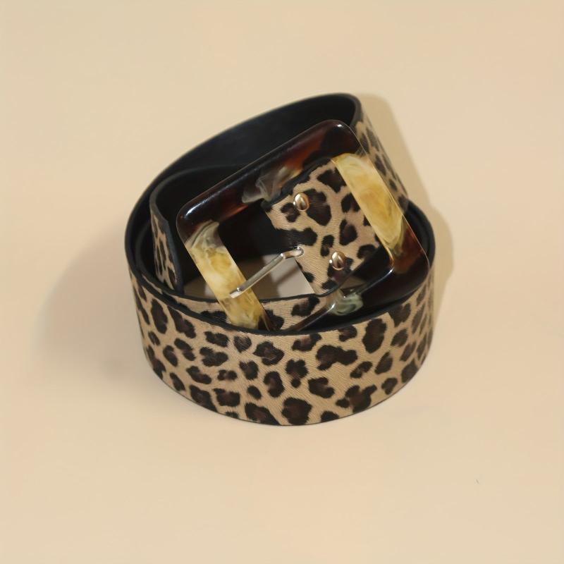 Elevate your casual attire with this stylish leopard print belt. The adjustable waistband and metal buckle add a vintage touch to any outfit.