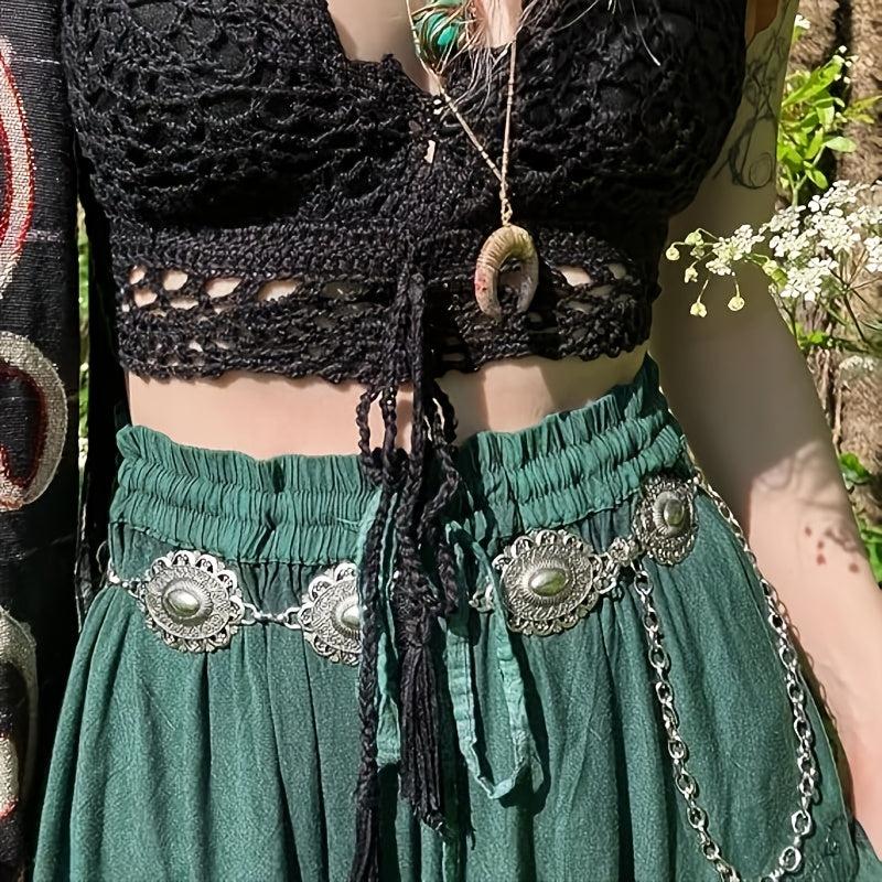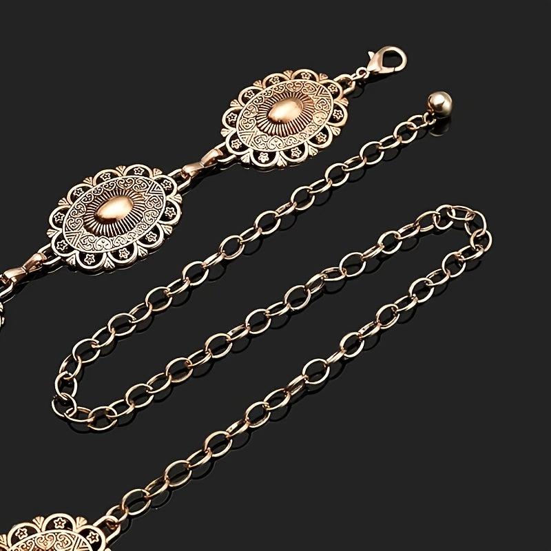 Elevate your outfit with this stylish metal waist belt. Available in golden and silvery colors, this vintage body shaper adds a touch of elegance to your look.