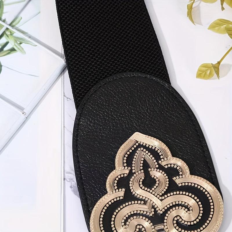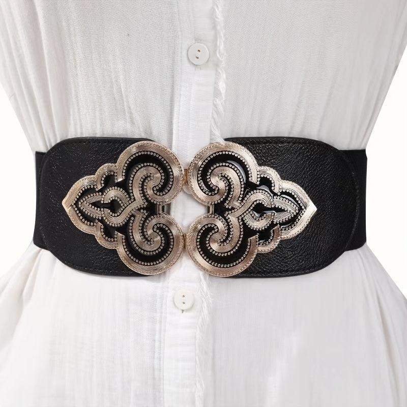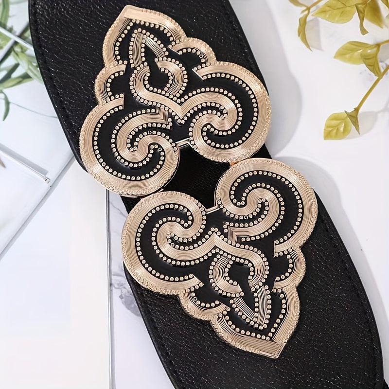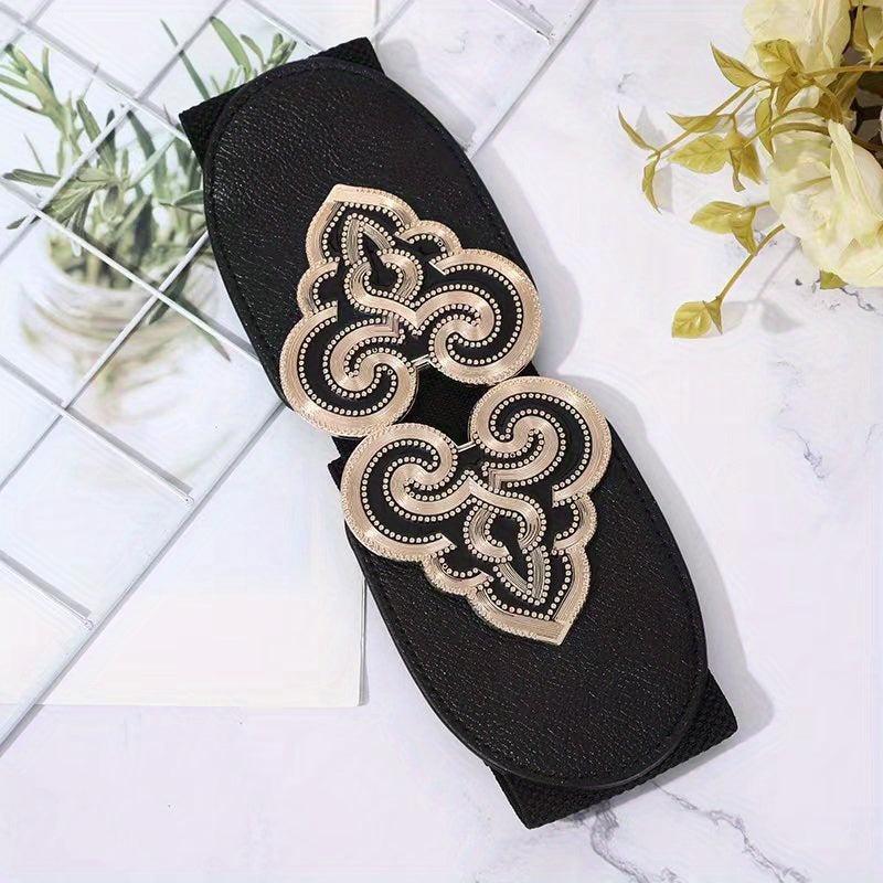 This retro belt features an openwork floral pattern with beige accents and a versatile alloy buckle. It can be worn from casual to formal occasions, adding a touch of style to your outfit.