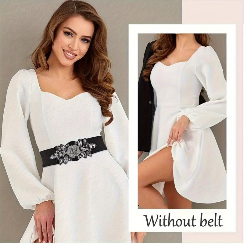 Rose Rhinestone Elastic Waistband for Ladies Match Dress Down Jacket