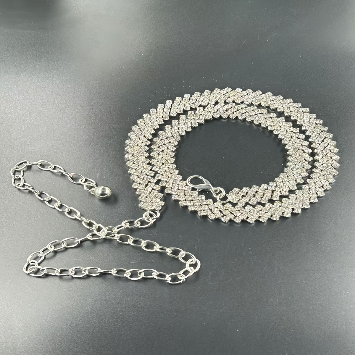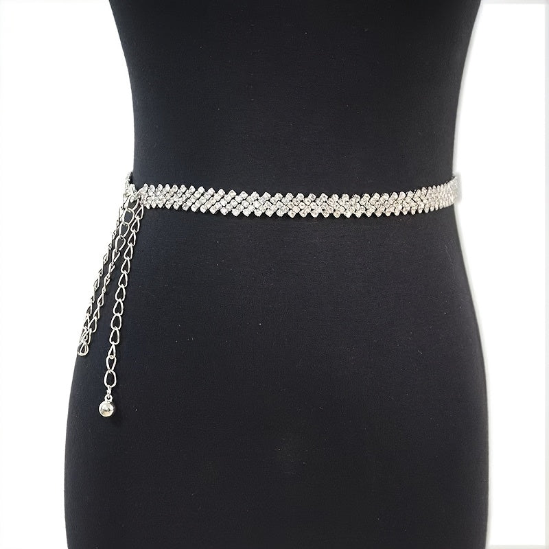 Elevate your casual outfit with this stylish rhinestone waist chain belt featuring a leaf design and dangling charm. Adjustable for the perfect fit.