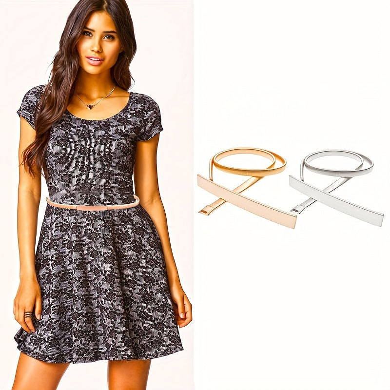 Elevate your outfit with this fashionable golden belt that accentuates your waist and adds a touch of glamour. Perfect for formal events or to elevate a casual look.