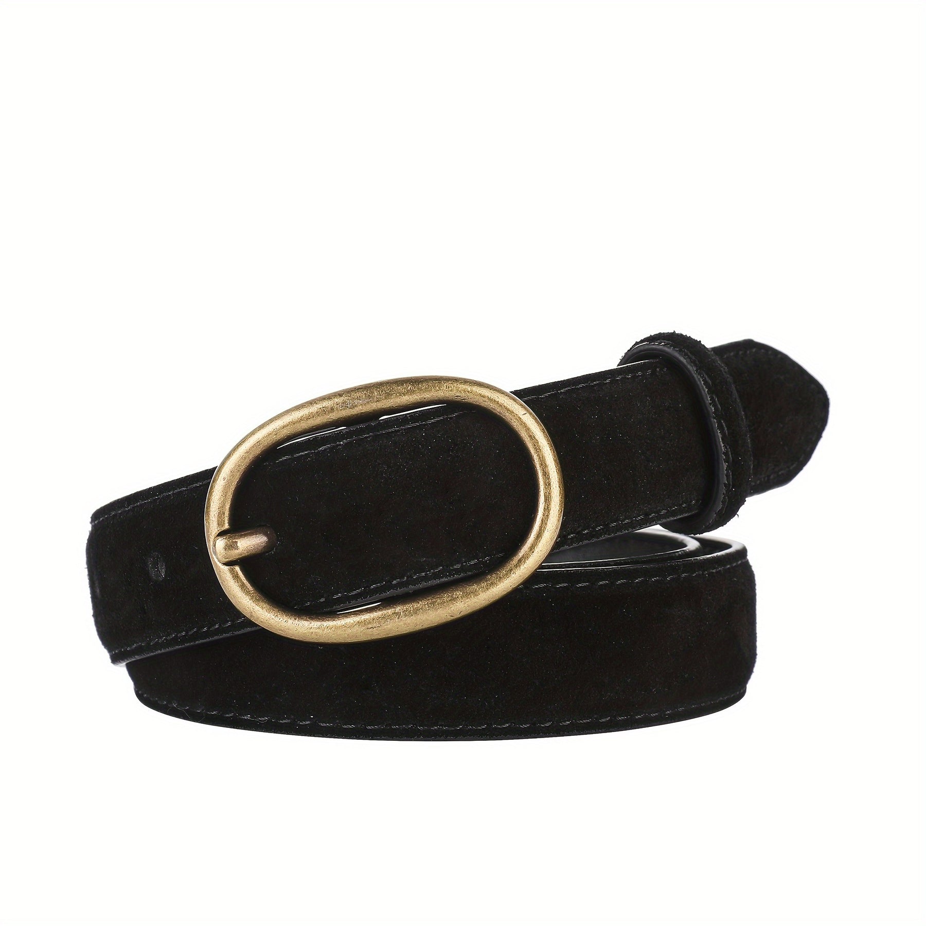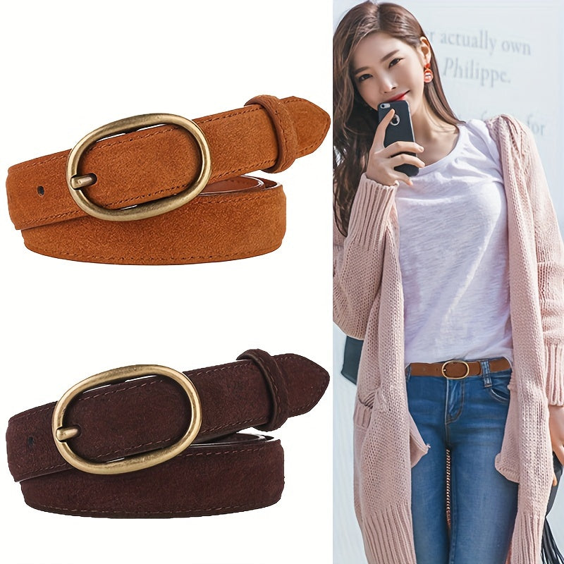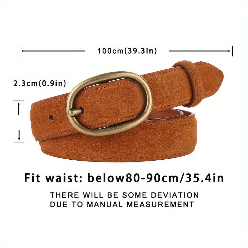 Add a touch of elegance to your casual attire with this women's leather belt featuring a golden tone pin buckle. Made from two layers of cowhide, this belt is perfect for jeans and casual outfits.