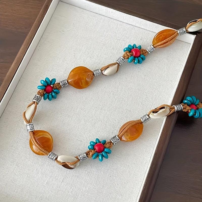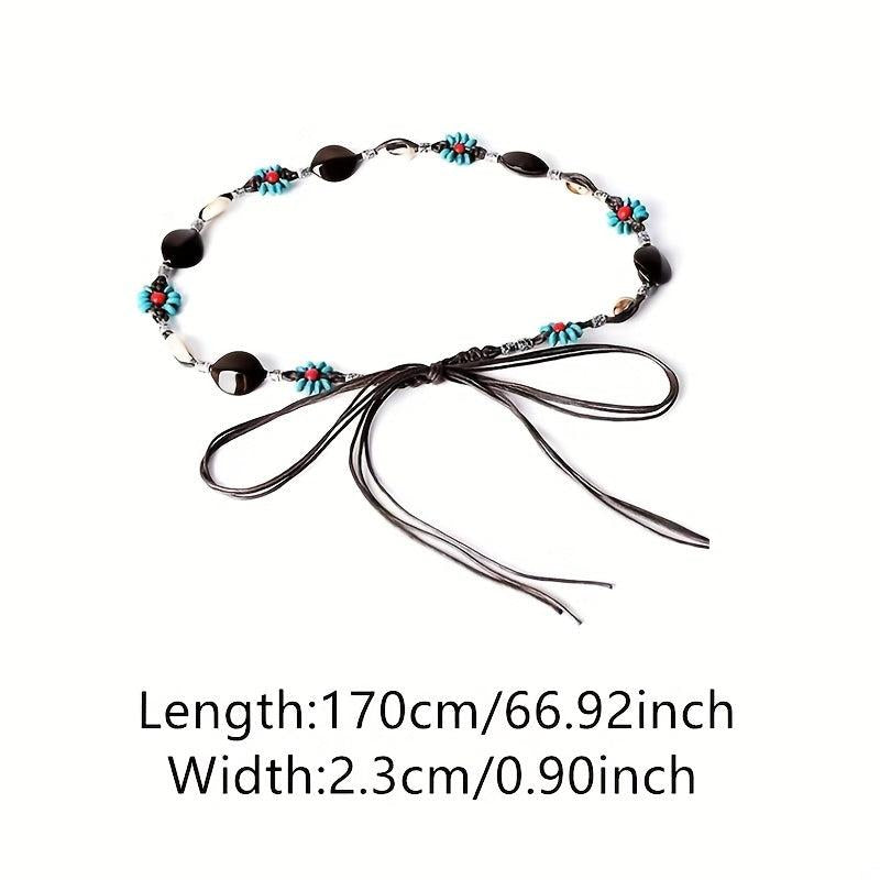 Elevate your style with this bohemian braided sash belt featuring intricate beading and floral shell accents. Perfect for adding a touch of classic elegance to any outfit.