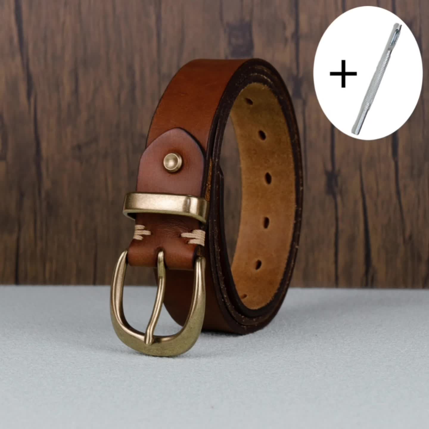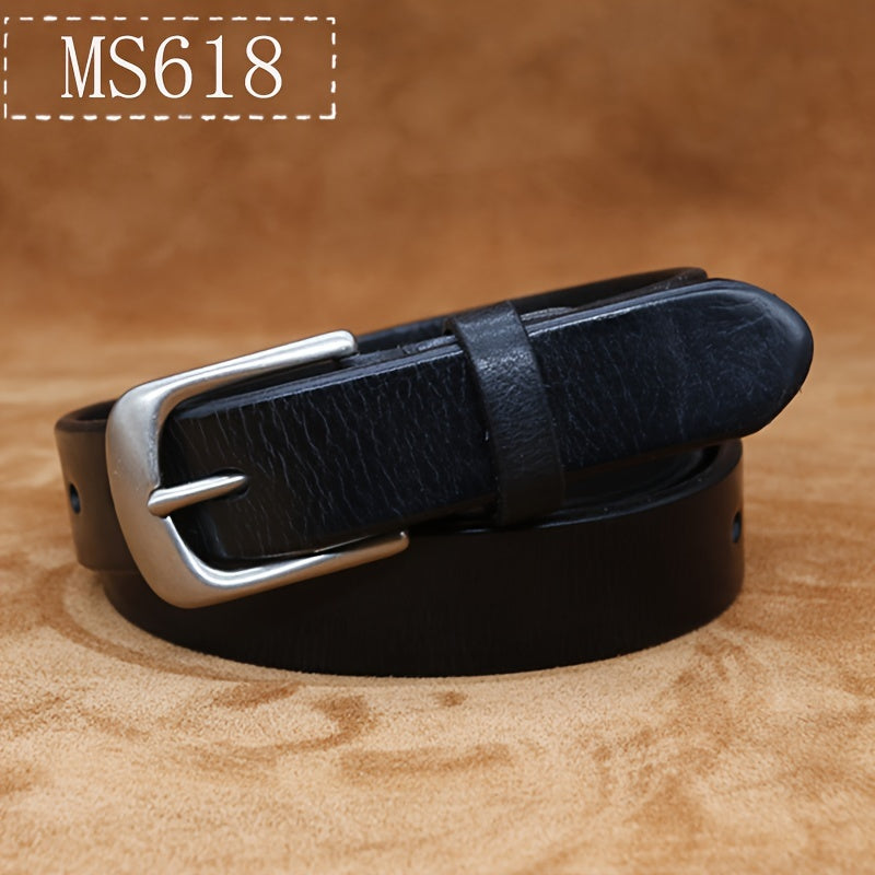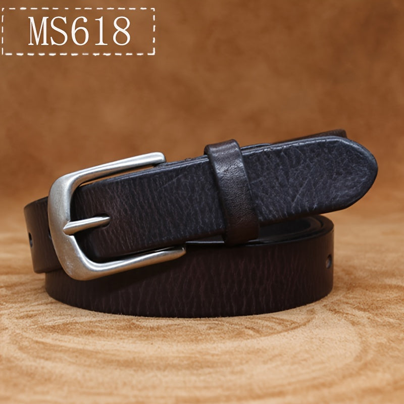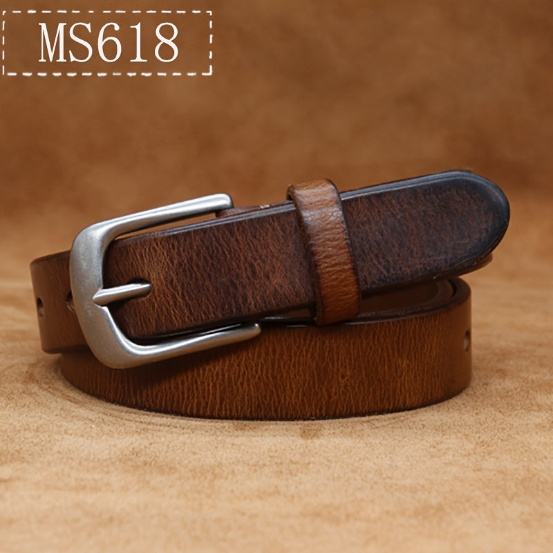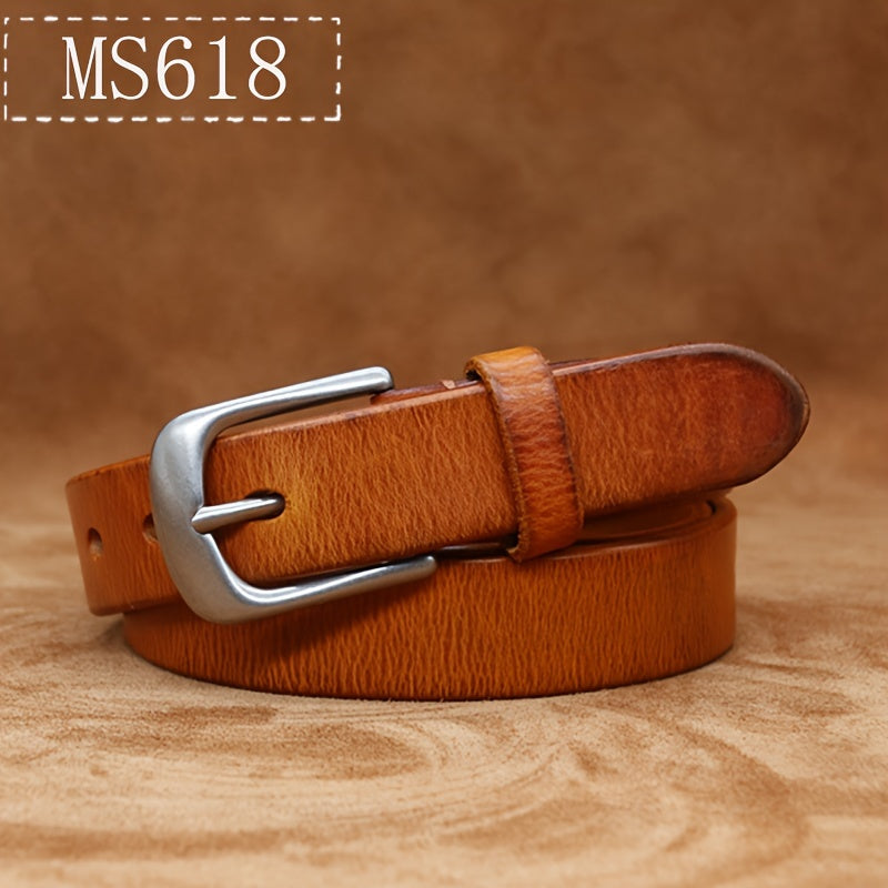 Enhance your outfit with this vintage cowhide women's belt featuring a casual style and thin needle buckle design.