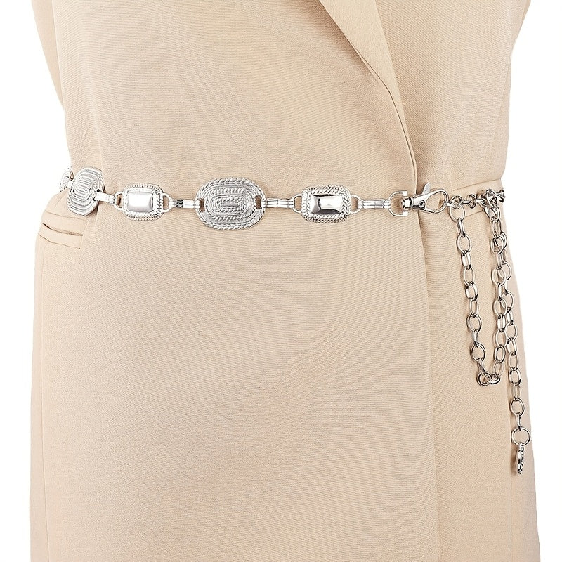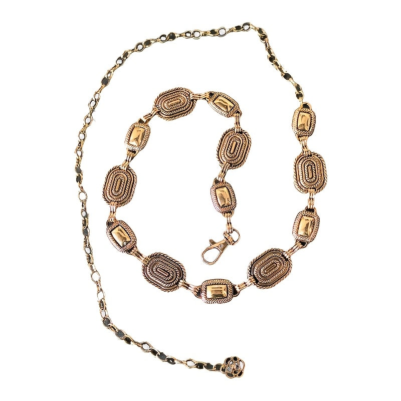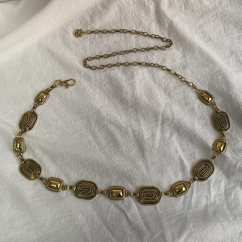 Add a touch of retro style to your outfit with this fashionable and versatile denim waist chain featuring a golden accent.
